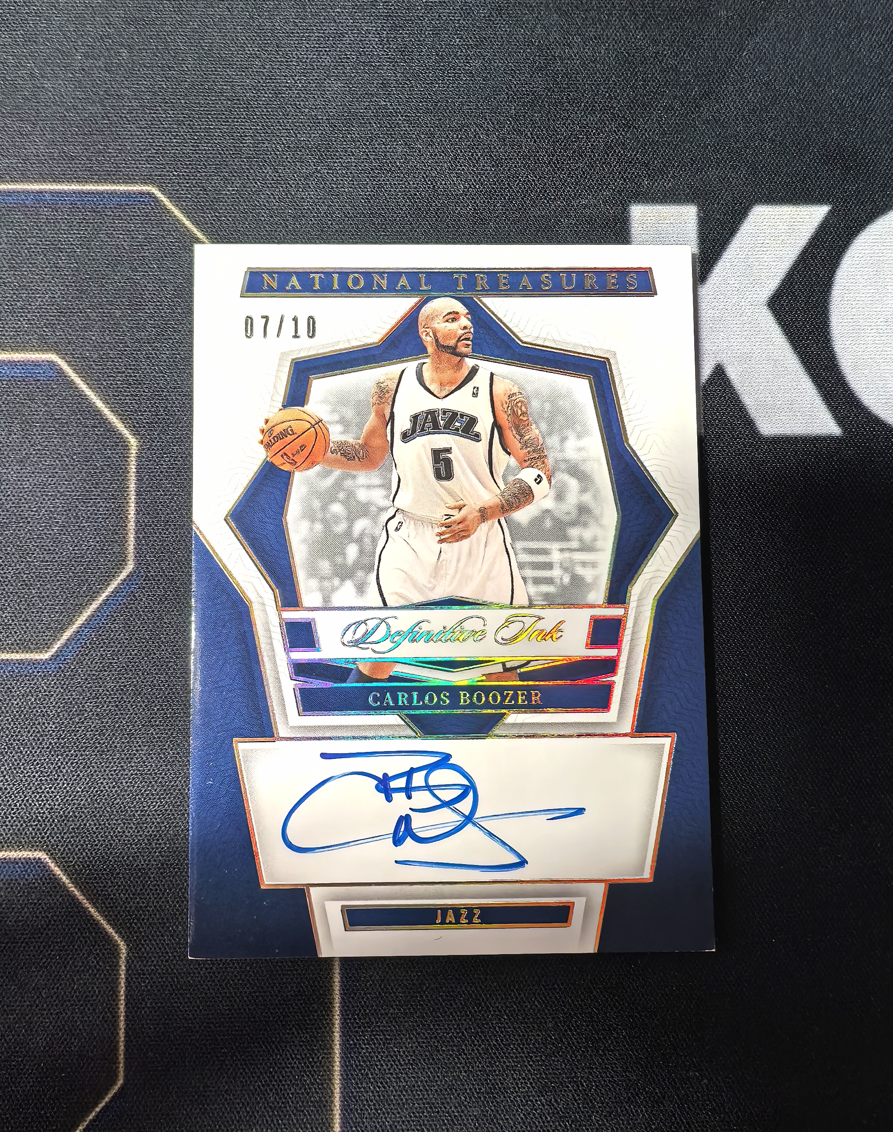 2023-24 Panini National Treasures Carlos Boozer 卡洛斯布泽尔 07/10编 超低编 金平行 卡签 签字 金闪版 爵士 国宝 犹他双煞 专收必备 卡品完好