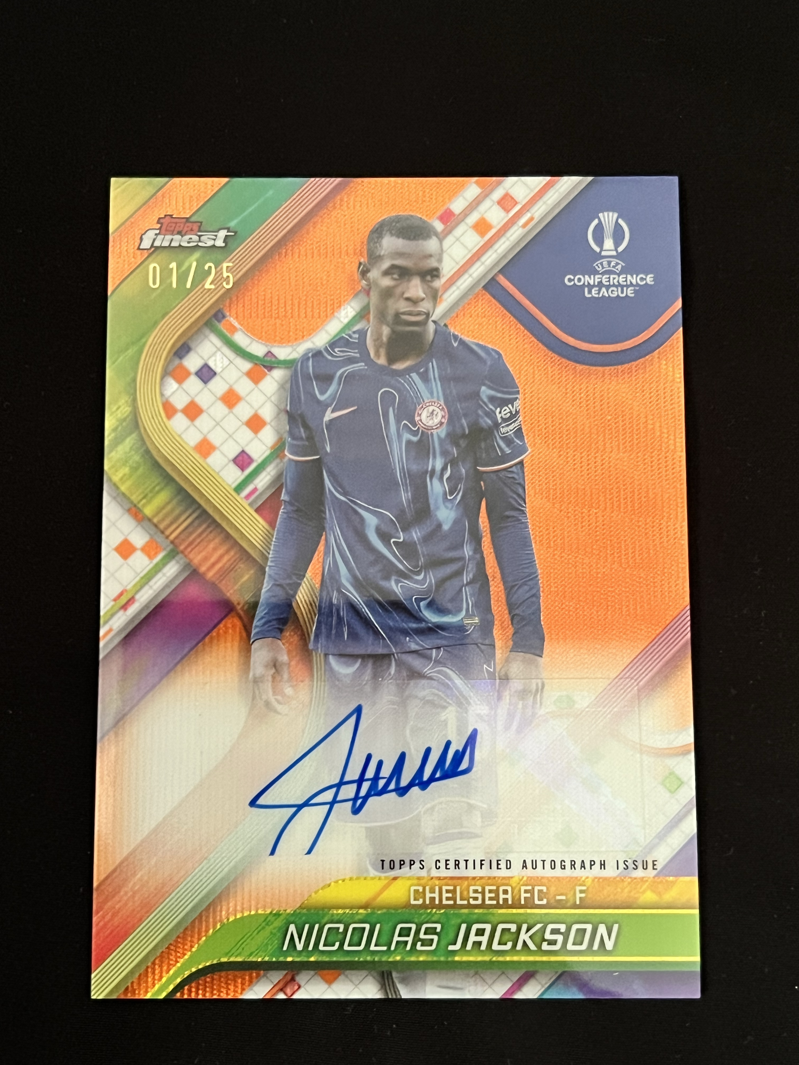 2024-25 Topps Finest 欧冠 切尔西 塞内加尔 Nicolas Jackson 尼古拉 雅克松 杰克逊 01/25编 首编 橙波纹折 签字 收藏必备 jz
