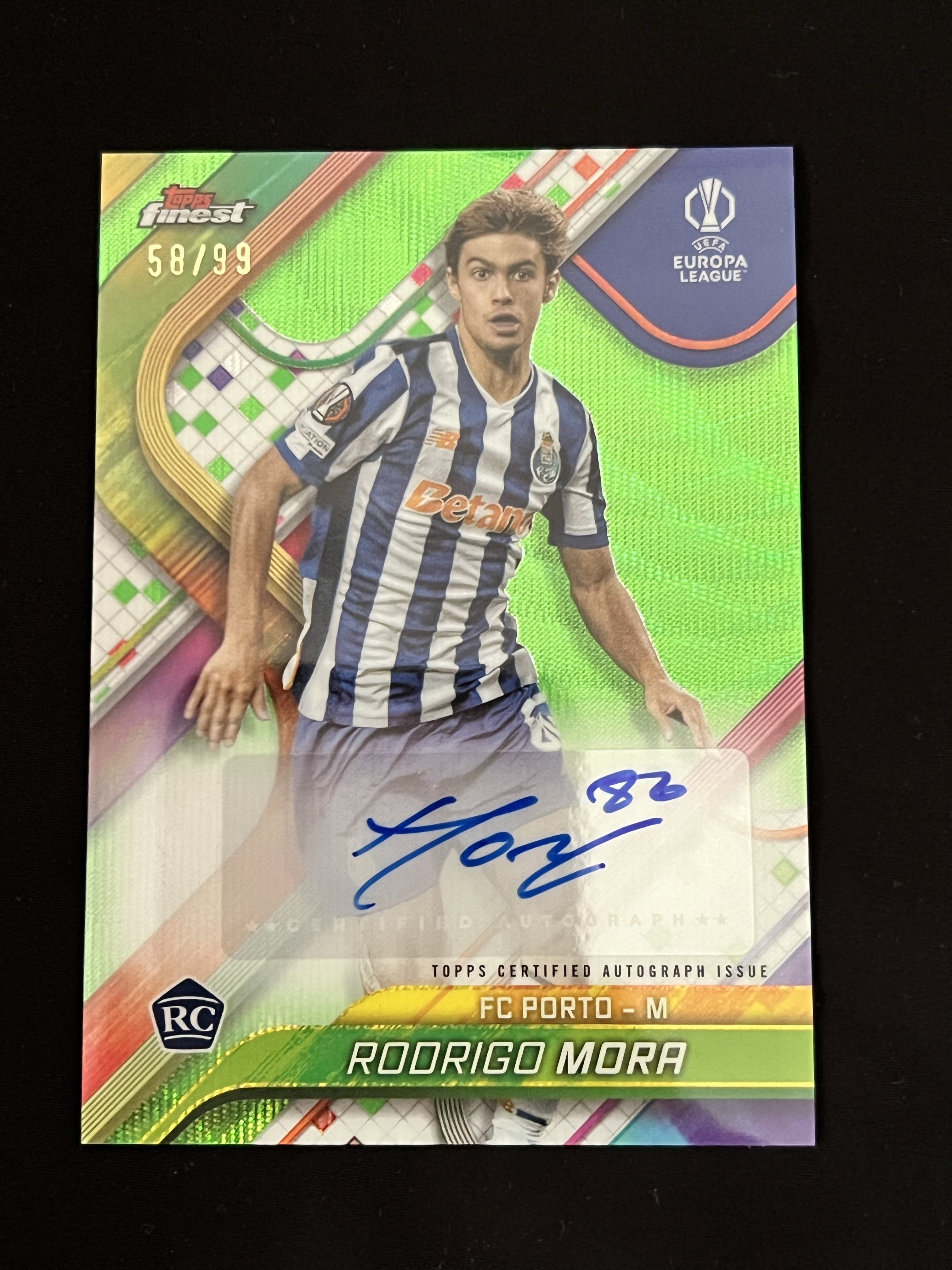 2024-25 Topps FINEST RODRIGO MORA RC 欧战 FINEST 罗德里戈 莫拉 波尔图 葡萄牙 RC新秀 58/99编 绿波纹折 签字 收藏必备 jz