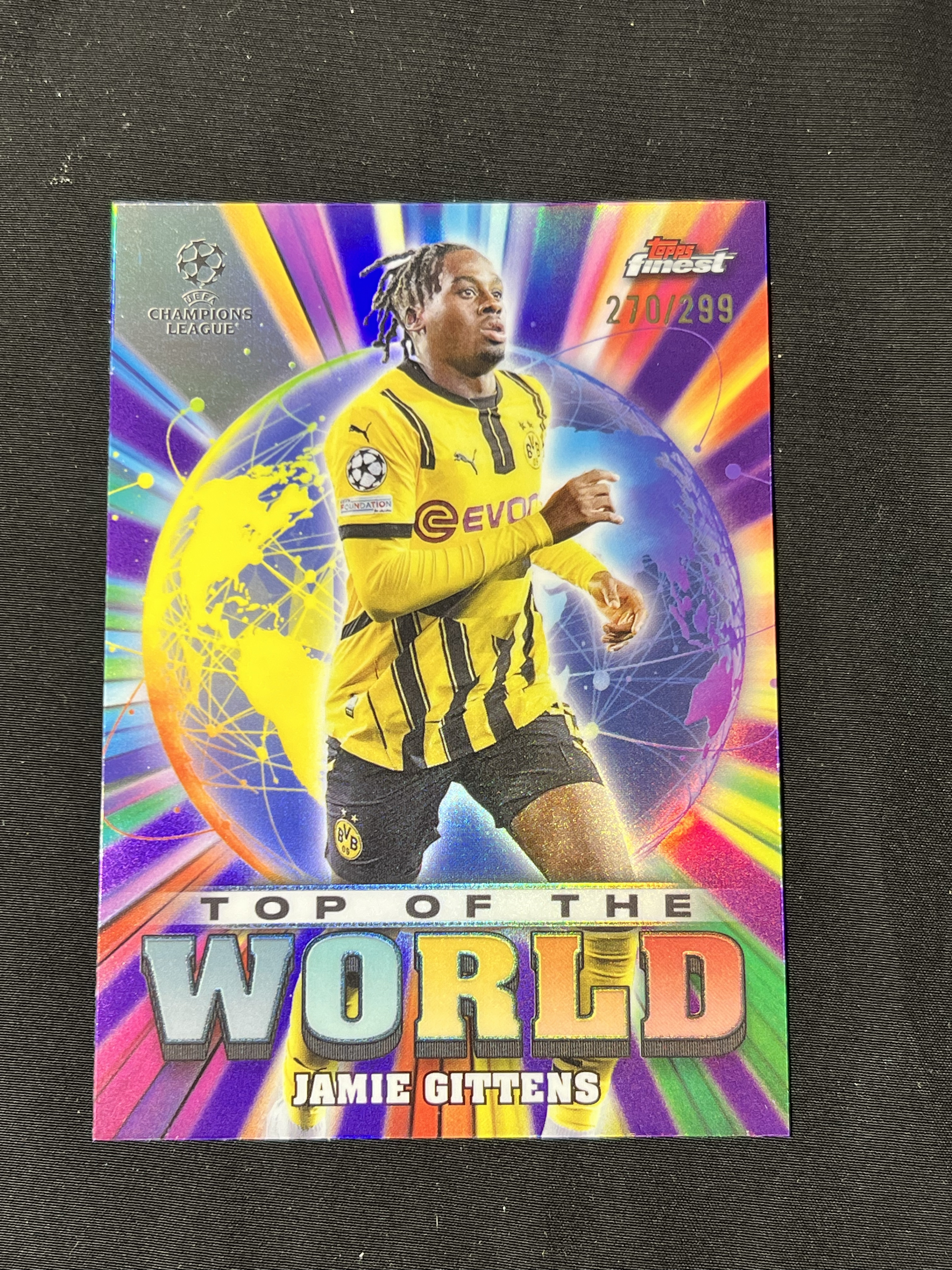 2024-25 Topps Finest Jamie Gittens 欧冠 多特蒙德 吉腾斯 299编 世界之巅特卡 紫折 收藏必备 jz