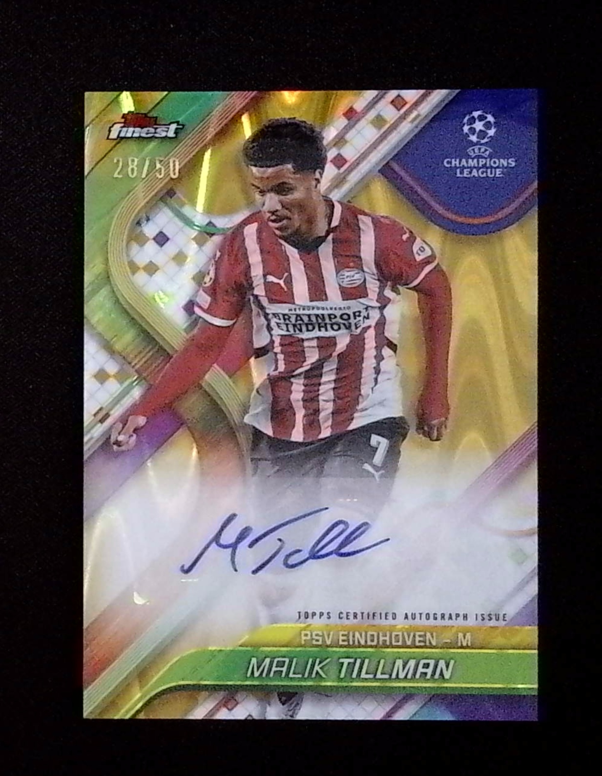 2025 Topps Finest Malik Tillman 欧冠 Finest 蒂尔曼 埃因霍温 金熔岩折 28/50编 签字 墨迹如图 收藏必备 卡品如图(铁哥)