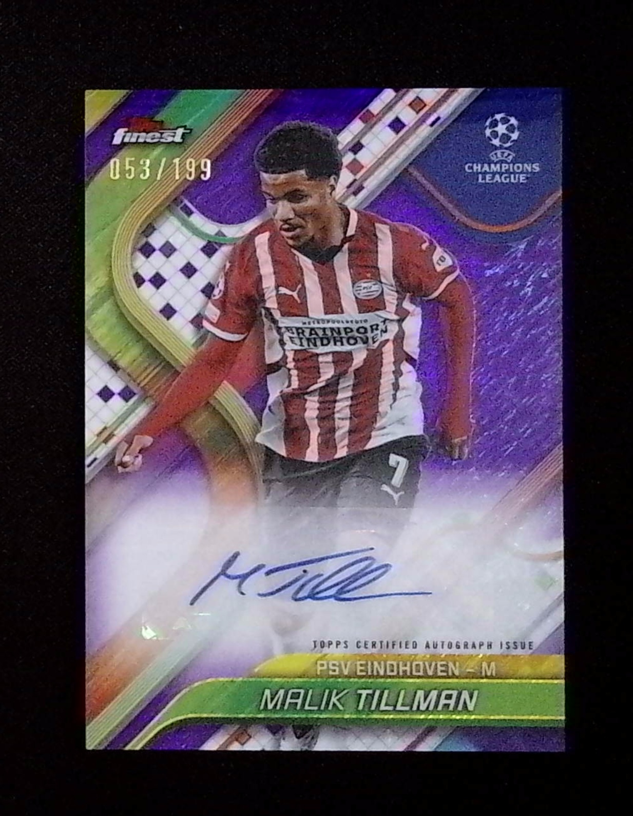 2025 Topps Finest Malik Tillman 欧冠 Finest 蒂尔曼 埃因霍温 紫微光折 53/199编 签字 墨迹如图 收藏必备 卡品如图(铁哥)