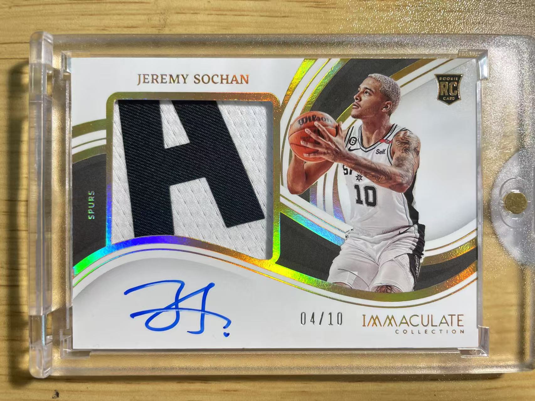 2022-23 Panini Immaculate Jeremy Sochan RC 【烟花】马刺 新秀RC 杰里米 索汉 签字 卡签 04/10编 大窗球衣 物料 暴力切割 Patch 收藏必备 耀