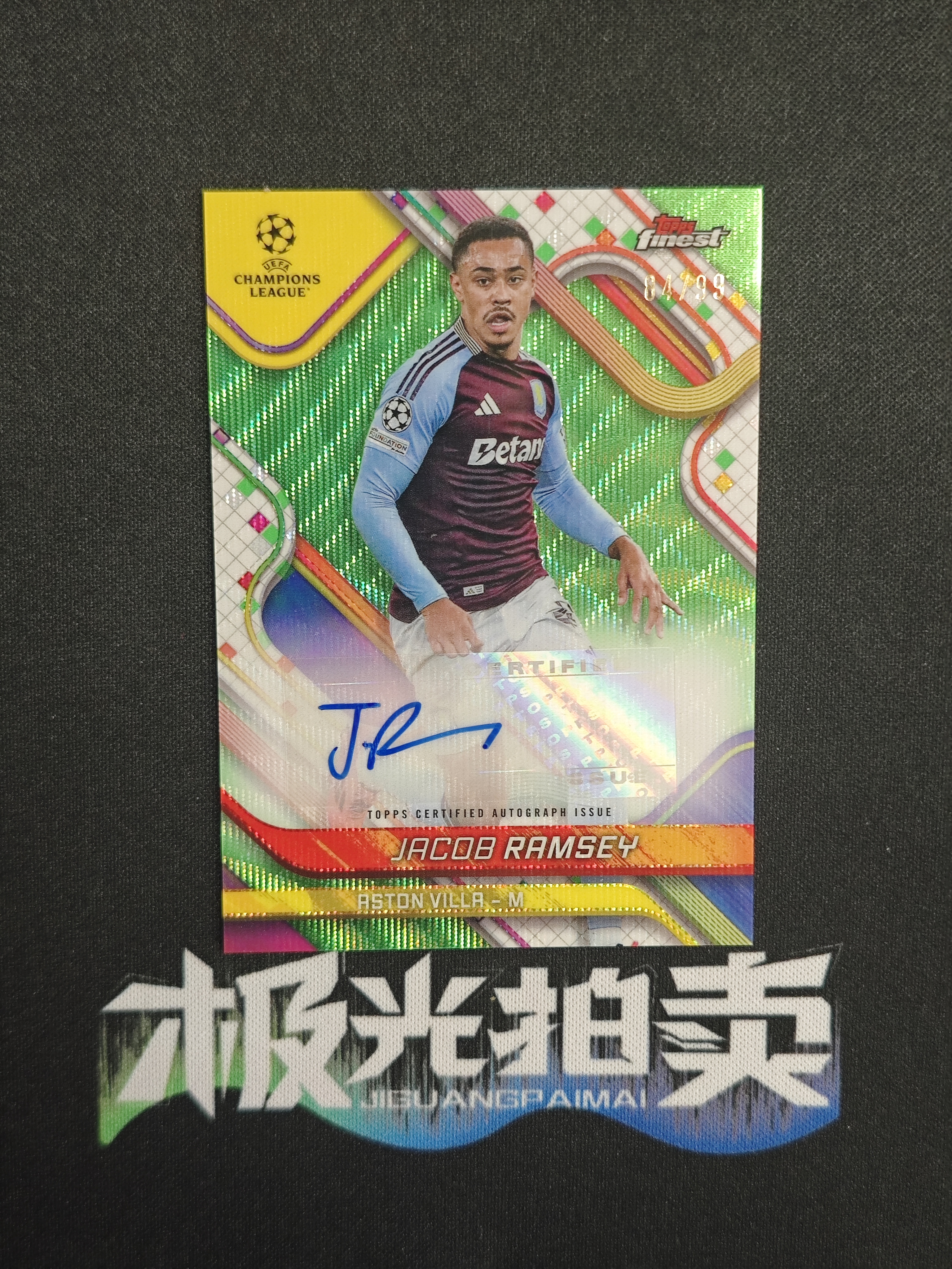 2024-25 Topps Finest Jacob Ramsey 雅各布拉姆塞 拉姆齐 84/99编 绿波纹折 签字 完美墨迹 阿斯顿维拉 英格兰 欧战 微瑕如图 实卡精美 收藏必备 w WG139