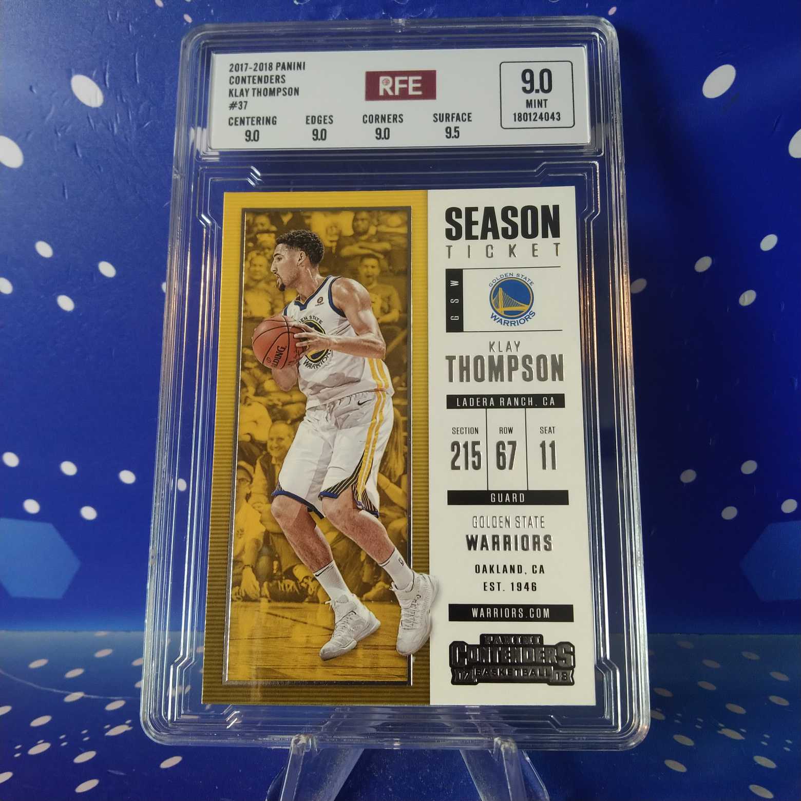 2017-18 Panini Contenders Klay Thompson 评级卡 汤普森 勇士 球票 实卡精美稀有 投资收藏必备 生日礼物(卡品如图 请看清再拍)【蓝色星球】