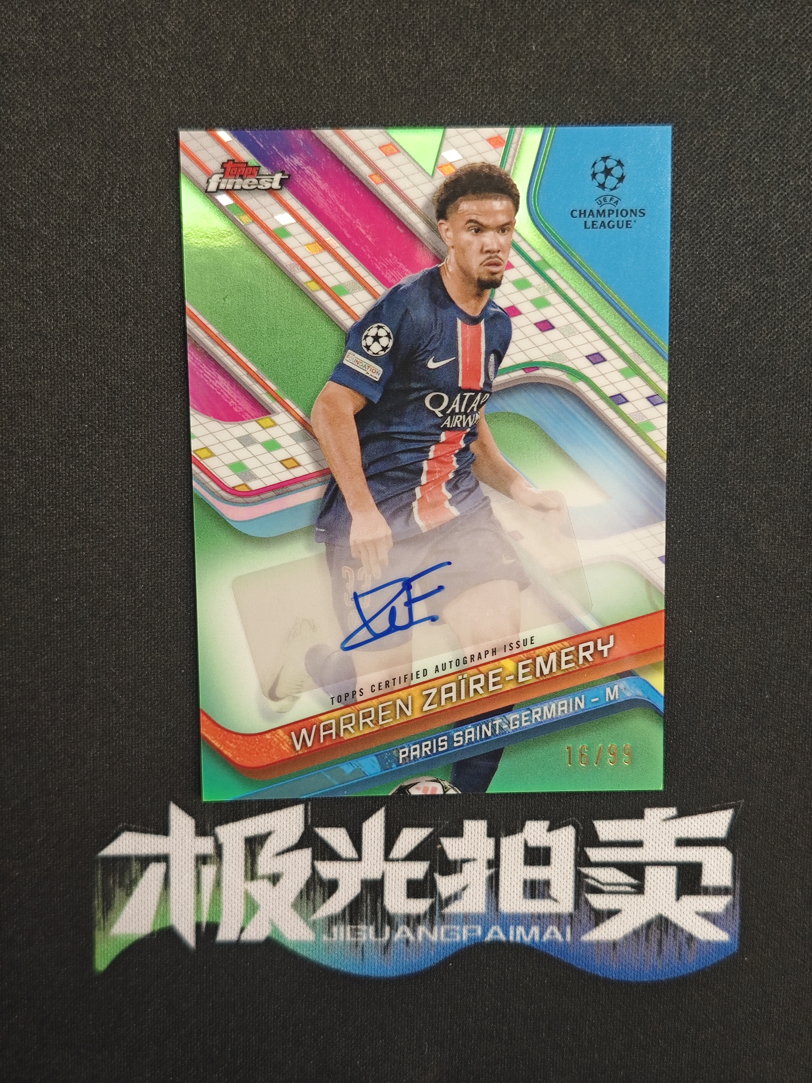 2024-25 Topps Finest Warren Zaïre-Emery 埃梅里 16/99编 绿折 签字 完美墨迹 巴黎圣日耳曼 法国 欧战 实卡精美 收藏必备 w WG139