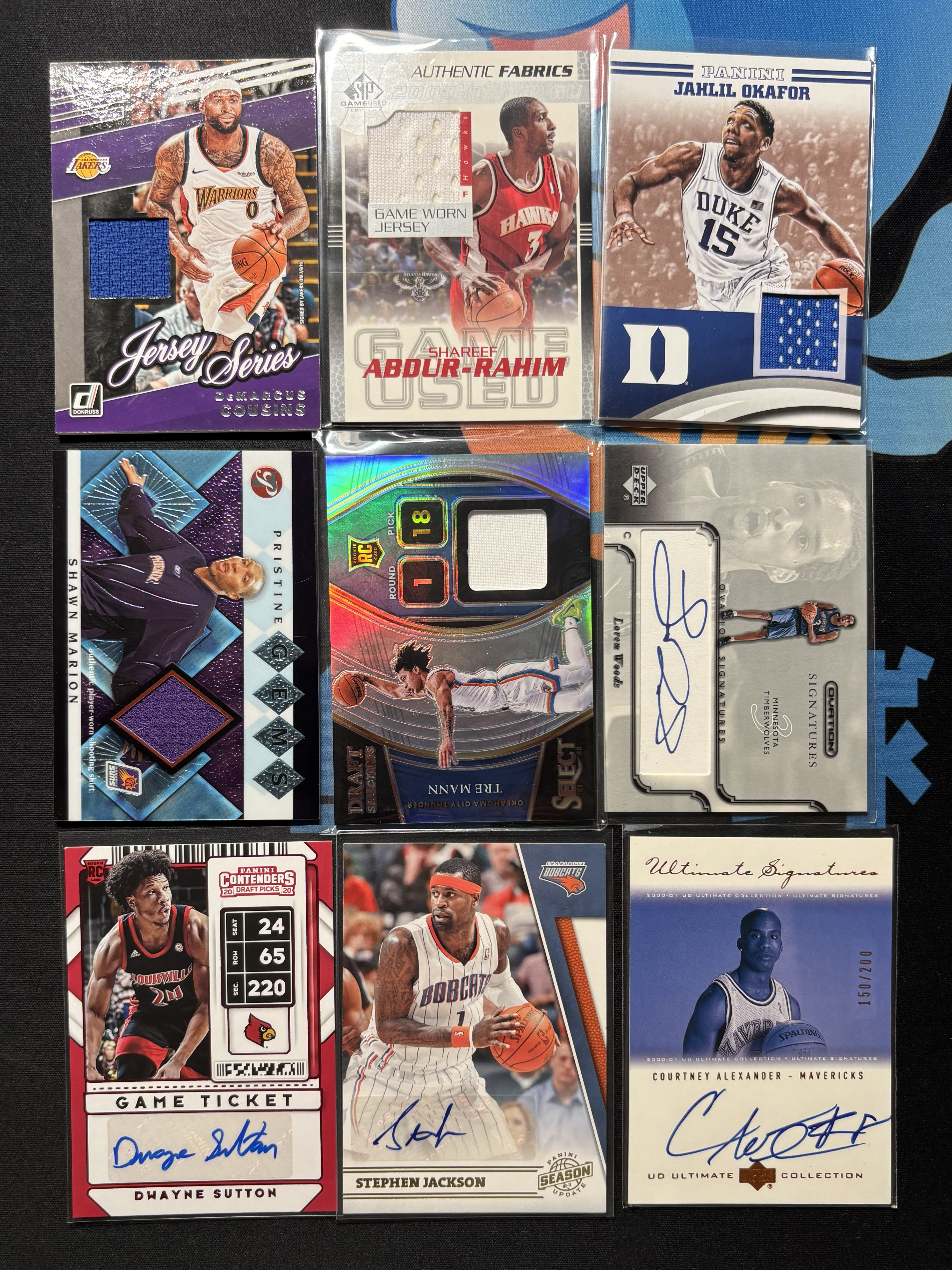 帕尼尼 UD Topps 拉希姆 奥卡福 考辛斯 斯蒂芬 杰克逊 马里昂 特雷 曼 新秀 等路人好人球衣物料签字9张打包 lot不保证品相 专收福包福盒必备 小鱼儿