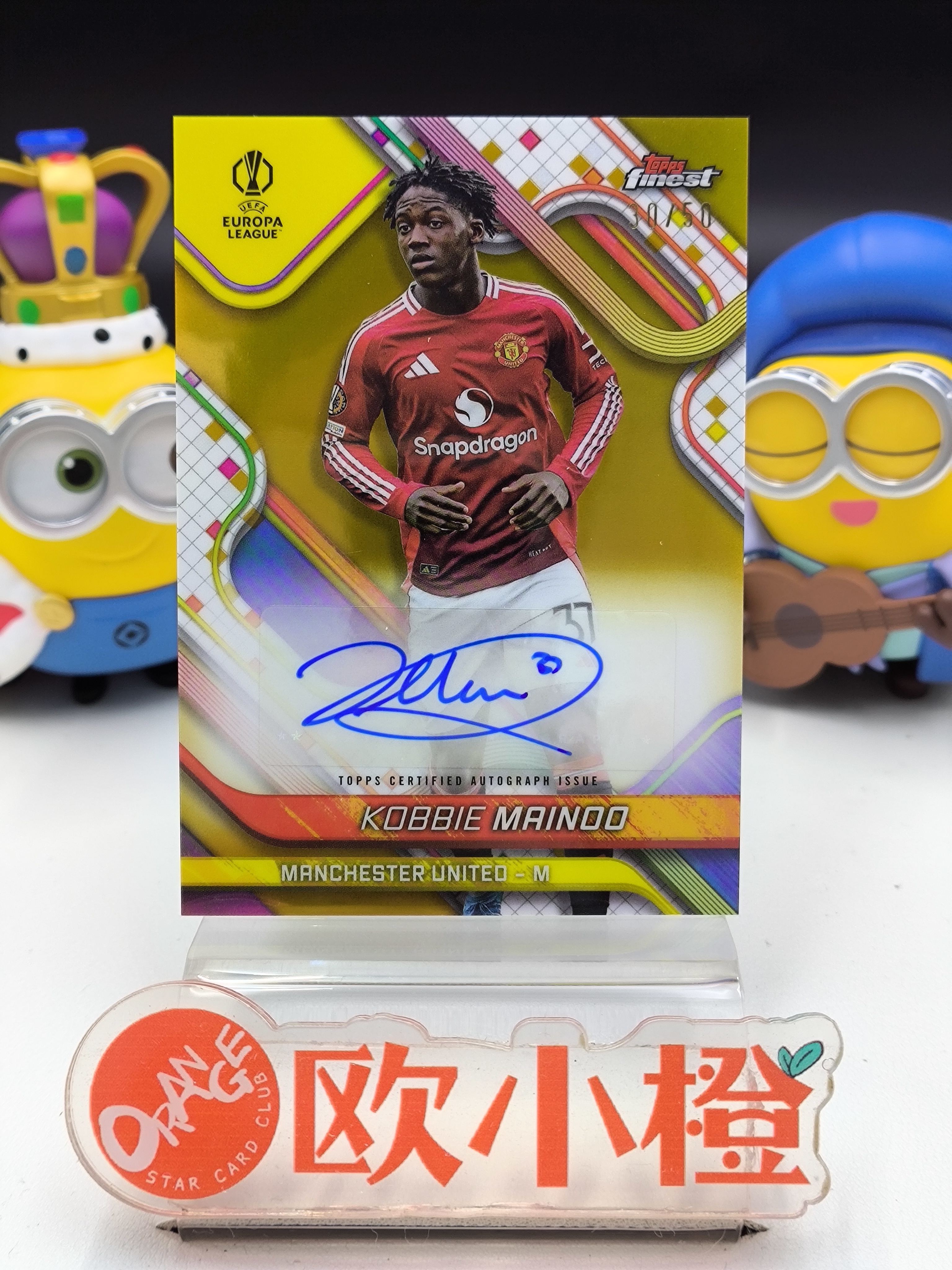 2024-25 【欧小橙急速拍】 topps finest Kobbie Mainoo 欧冠 finest 曼联 科比 梅努 /50编 金折 签字 瑕疵如图 收藏必备煮-WJX