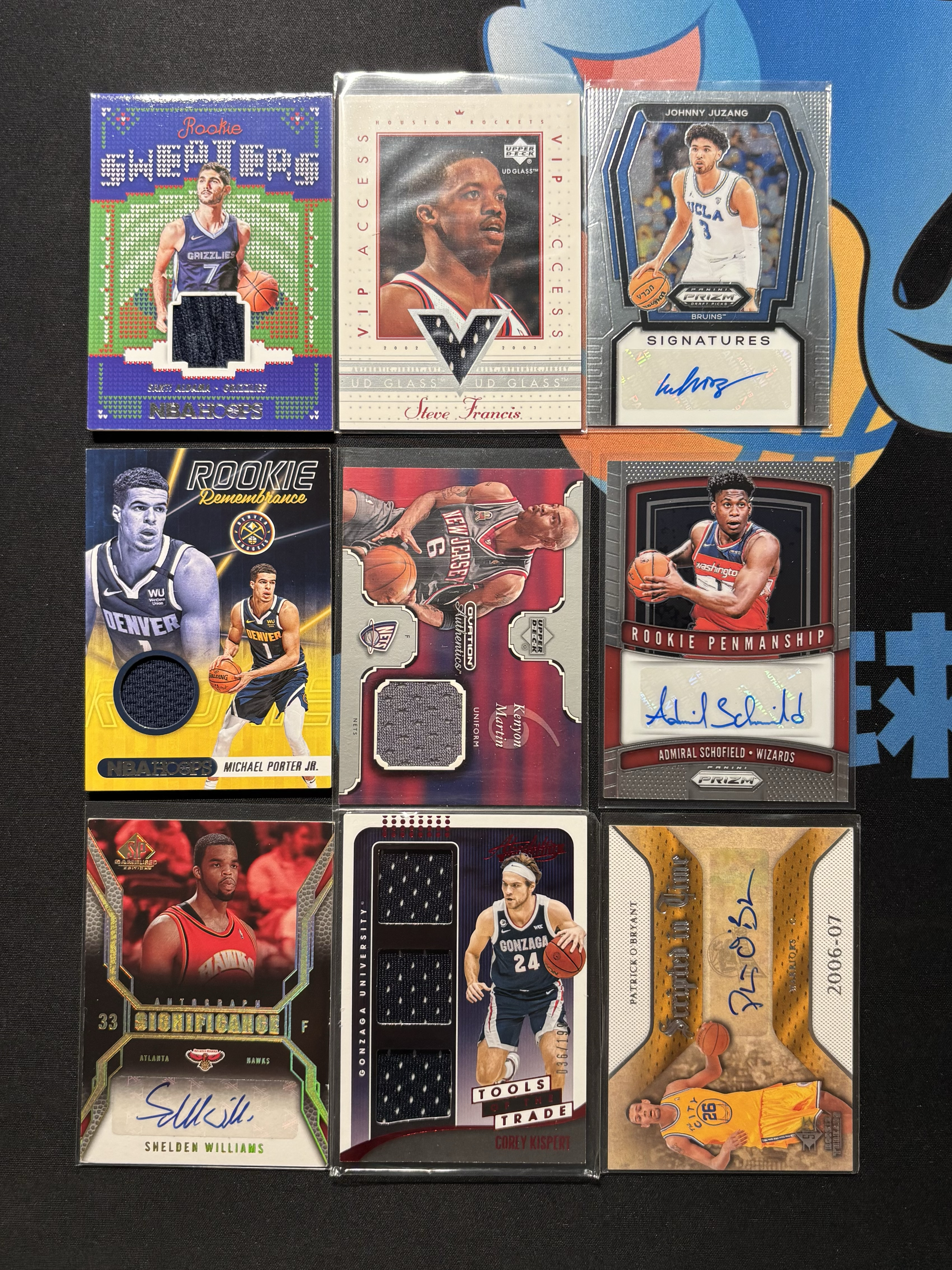 帕尼尼 UD Topps 弗朗西斯 迈克尔 波特 肯扬 马丁 基斯珀特 谢尔登 威廉姆斯 奥布莱恩特 阿尔达马 新秀 等路人好人球衣物料签字9张打包 lot不保证品相 专收福包福盒必备 小鱼儿