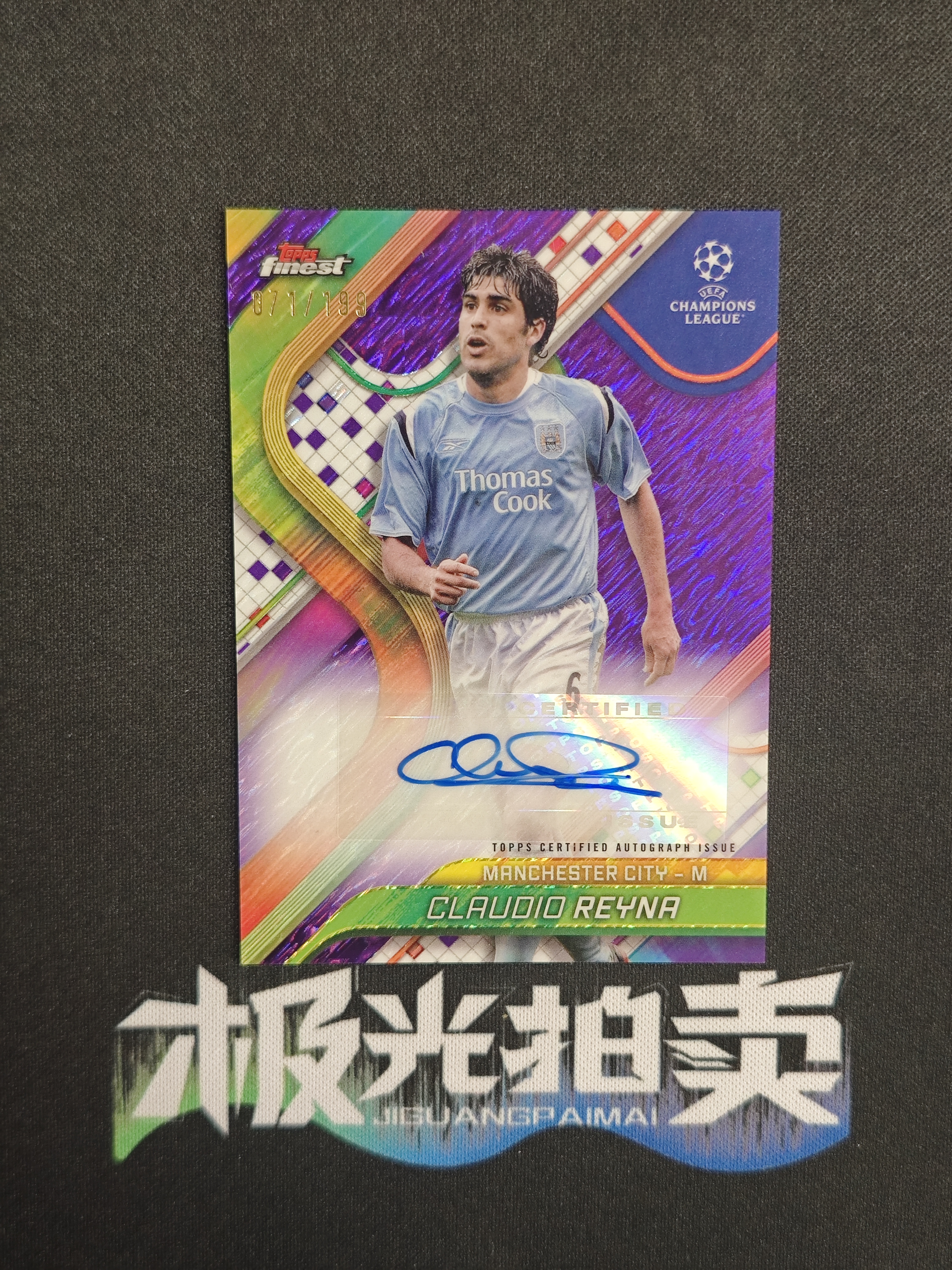 2024-25 Topps Finest Claudio Reyna 雷纳 071/199编 紫微光折 签字 完美墨迹 美国 曼城传奇 欧战 微瑕如图 实卡精美 收藏必备 w WG139