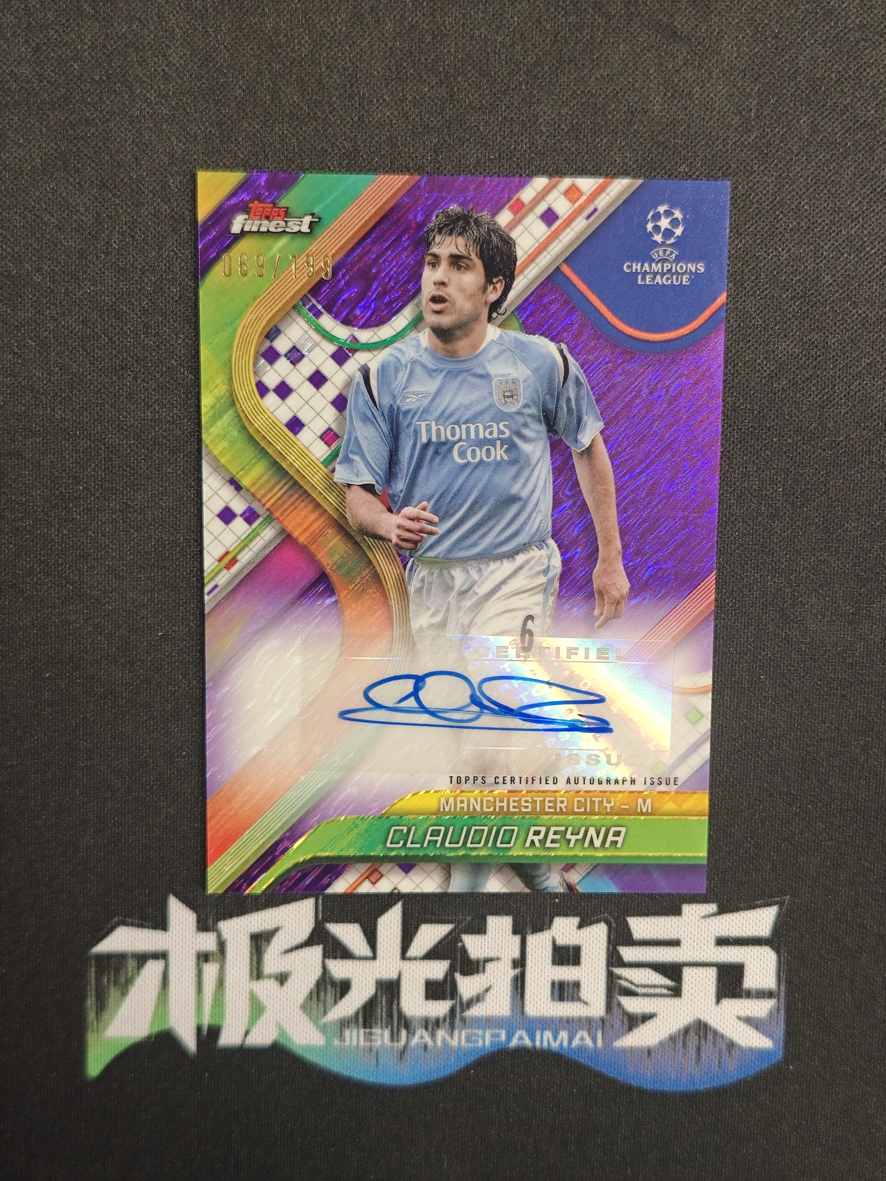 2024-25 Topps Finest Claudio Reyna 雷纳 069/199编 紫微光折 签字 完美墨迹 美国 曼城传奇 欧战 微瑕如图 实卡精美 收藏必备 w WG139
