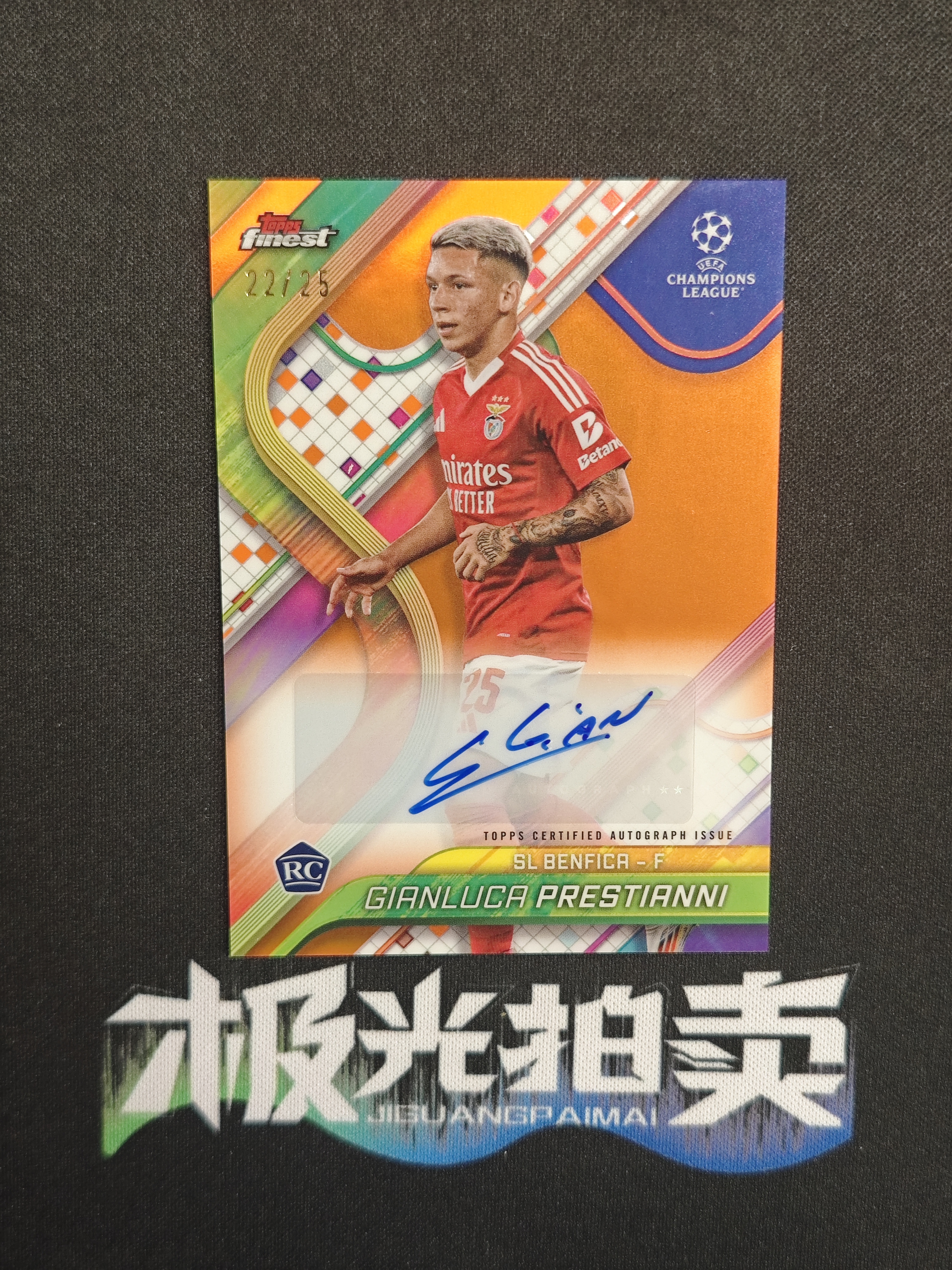 2024-25 Topps Finest Gianluca Prestianni RC 普雷斯蒂安尼 22/25编 橙折 签字 低编稀有 阿根廷 本菲卡新秀前锋 欧战 完美墨迹 微瑕如图w WG139