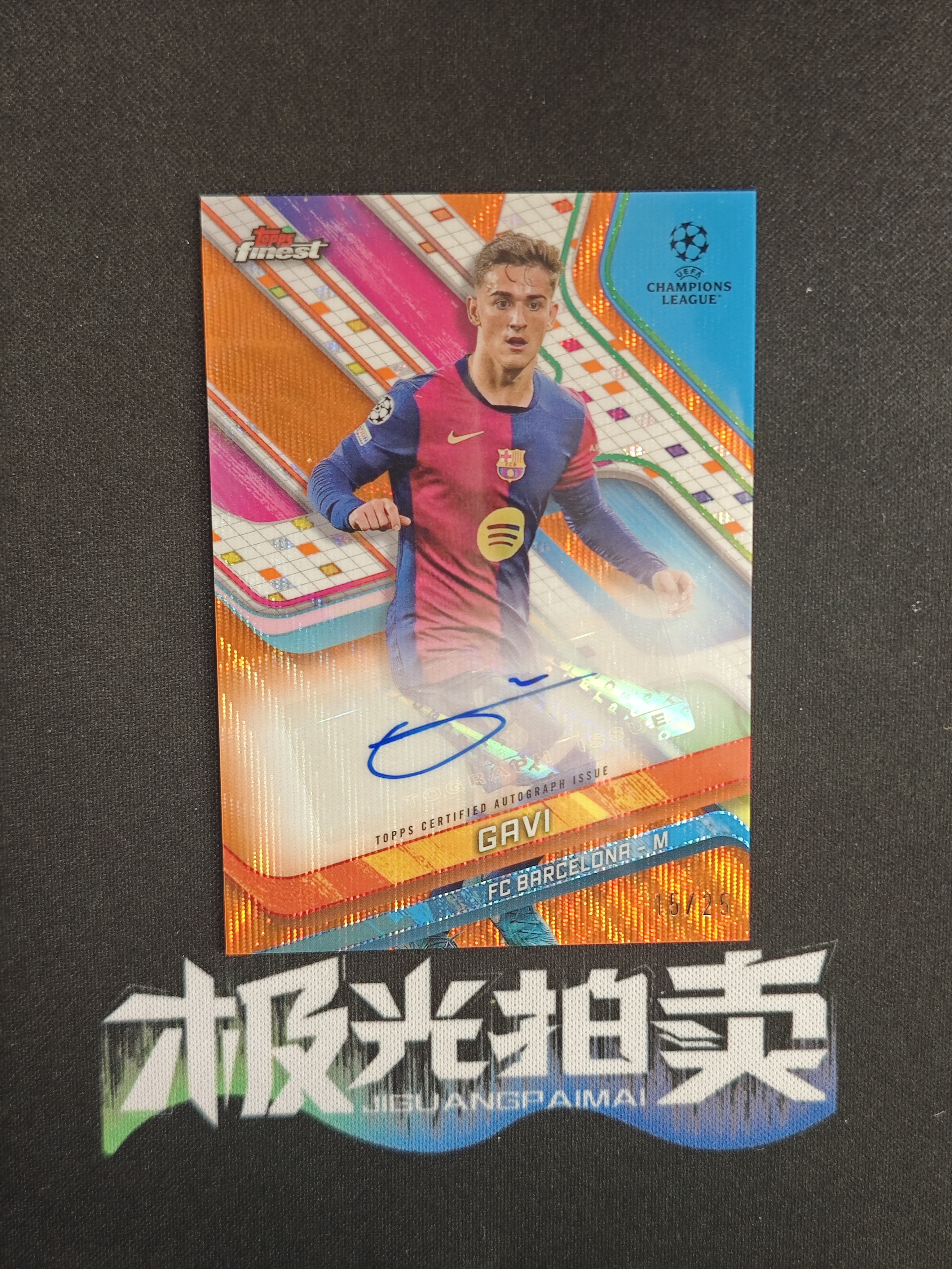 2024-25 Topps Finest Gavi 加维 15/25编 橙波纹折 低编稀有 签字 巴塞罗那 巴萨 西班牙 天才中场 微瑕如图 实卡精美 收藏必备 w WG139