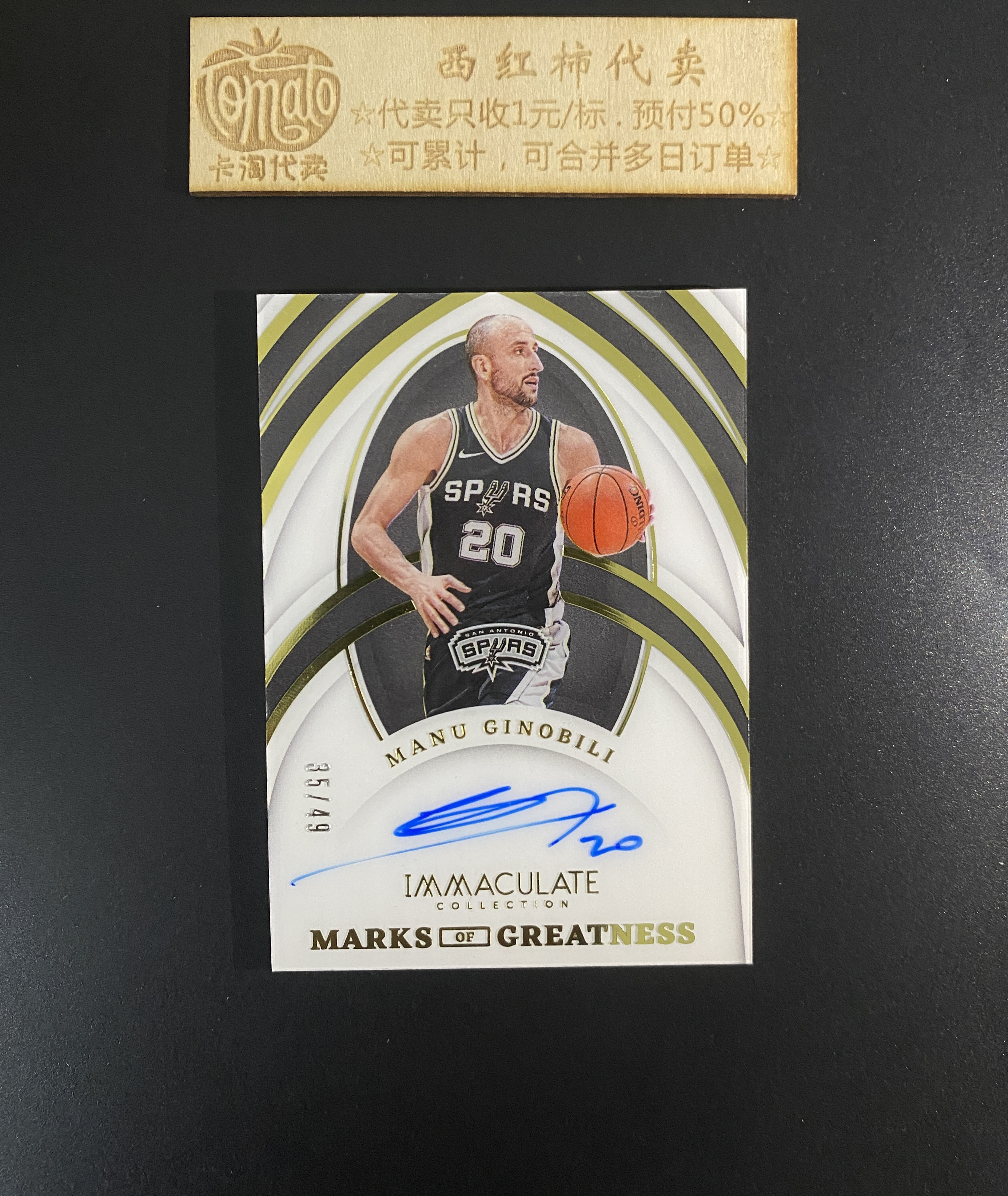 【西红柿】2021-22 Panini Immaculate Manu Ginobili 马刺 马努 吉诺比利 妖刀 签字 卡签 49编 伟大印记签 GREATNESS 邓肯队友 微瑕 gj45