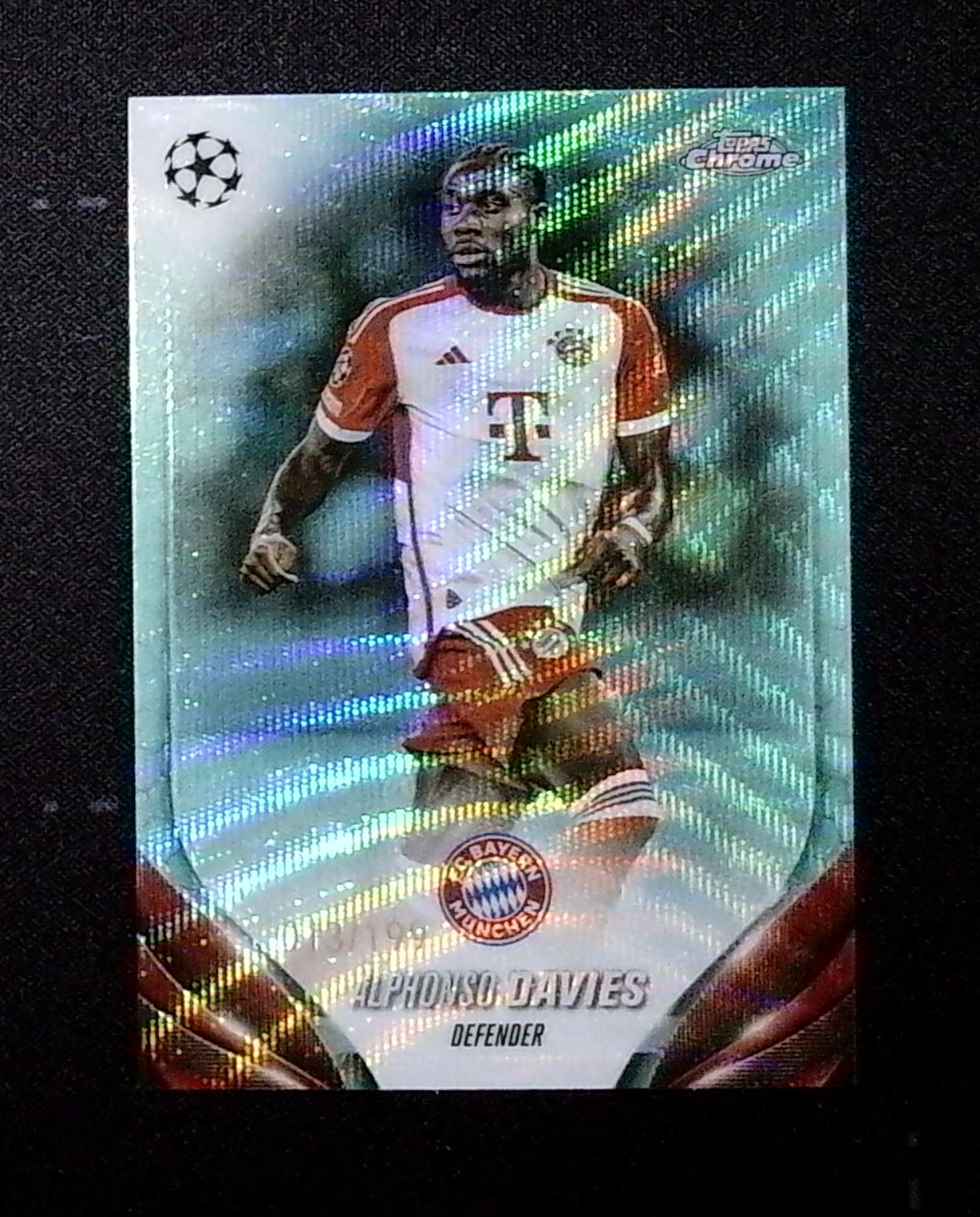 2024 Topps Chrome Alphonso Davies 欧冠 TC 拜仁 阿方索 戴维斯 青波纹折 13/199编 收藏必备 卡品如图(多鱼)