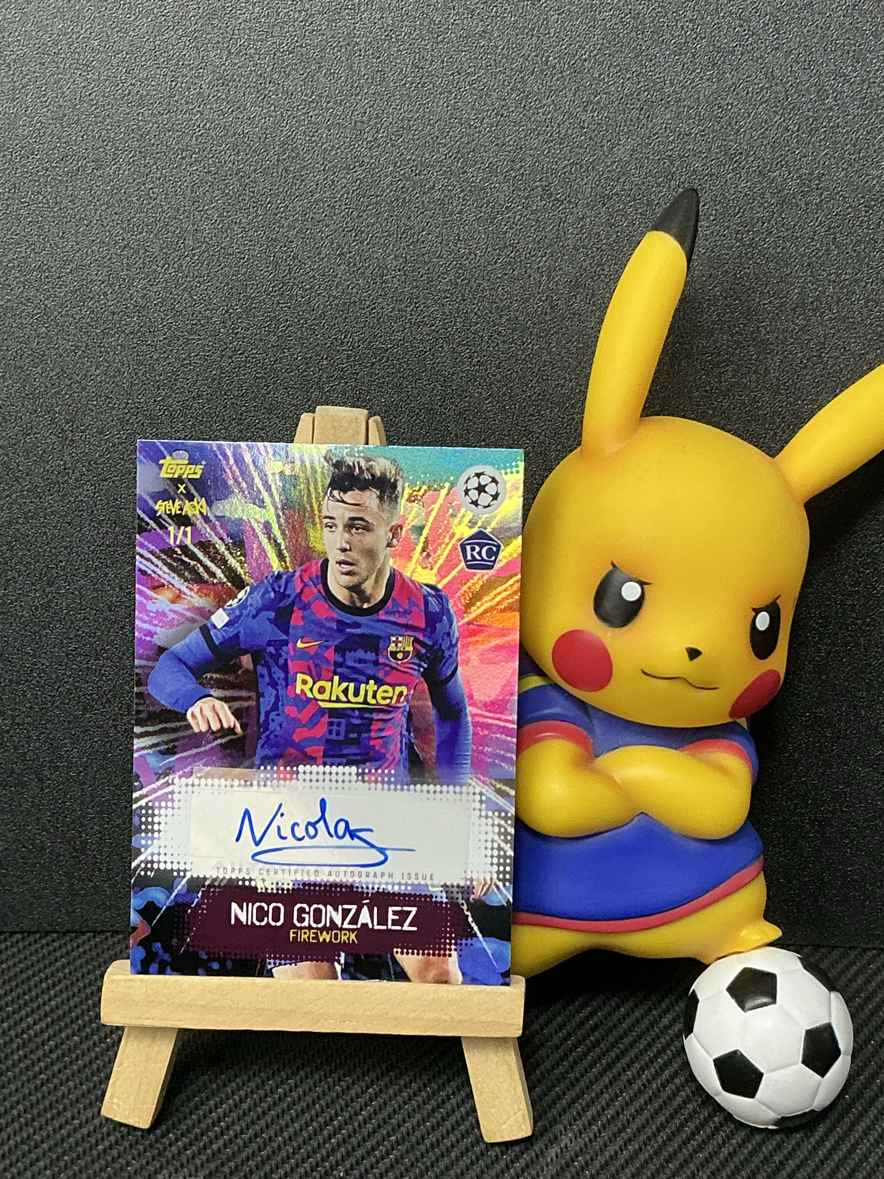 2021-22 Topps UEFA Champions League Nico González RC 尼科冈萨雷斯 1/1编 1of1 金折 巴萨 曼城 西班牙 中场 蹦迪联名 新秀签字 卡品如图