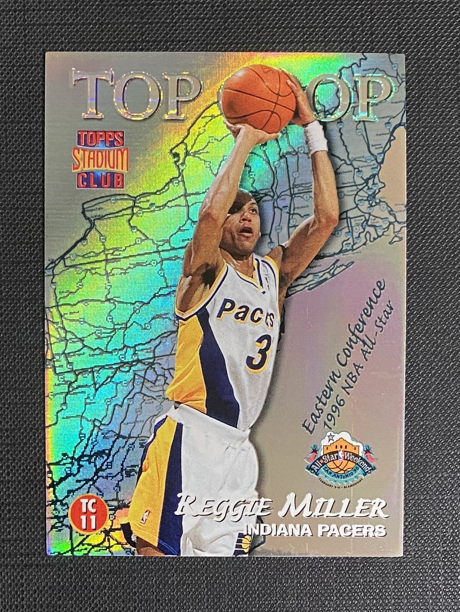 1996-97 Topps Stadium Club Reggie Miller 米勒 里奇蒙德 大比例 折射 特卡 联盟顶级得分后卫对决 东西海岸地图设计 步行者三分王绝杀乔丹 国王 镭射爆闪美如画