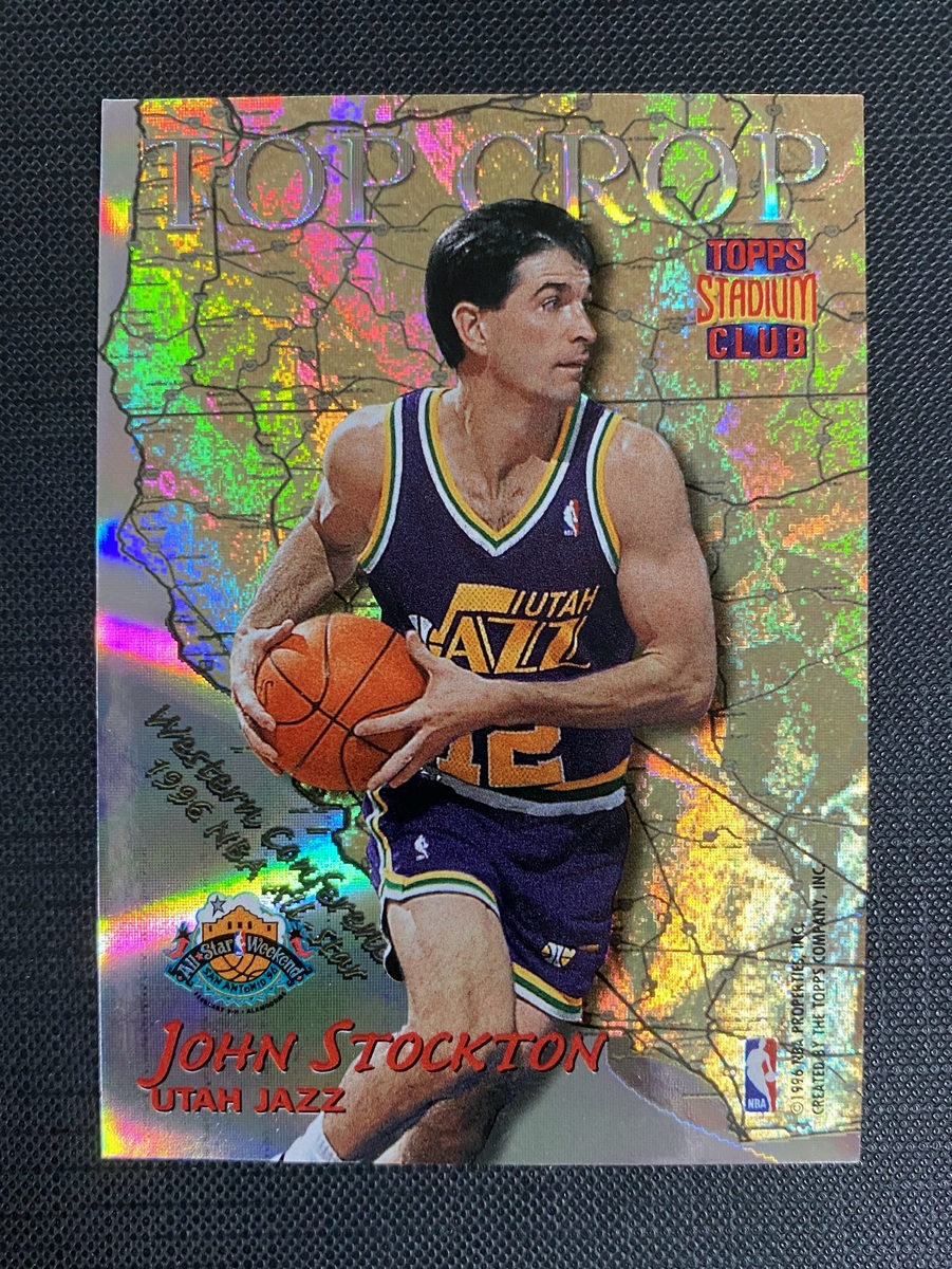 1996-97 Topps Stadium Club John Stockton 斯托克顿 布兰登 大比例 折射 特卡 联盟顶级控卫对决 东西海岸地图设计 犹他爵士 助攻王 镭射爆闪美如画