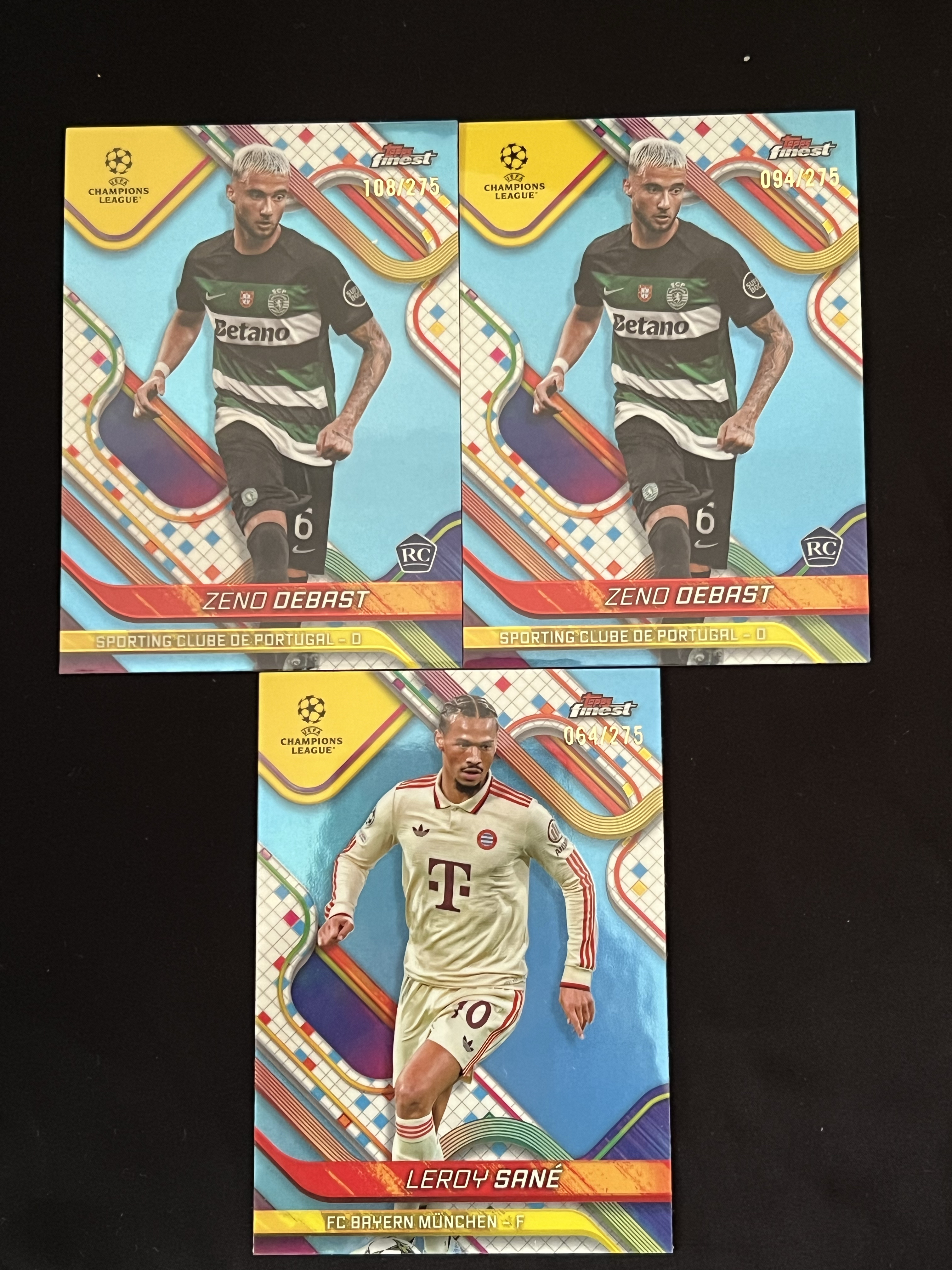 2025 Topps Finest ZENO DEBAST 欧冠UEFA 葡萄牙体育 新秀RC 德巴斯特 拜仁 萨内 275编 3张 卡品不保 豆豆