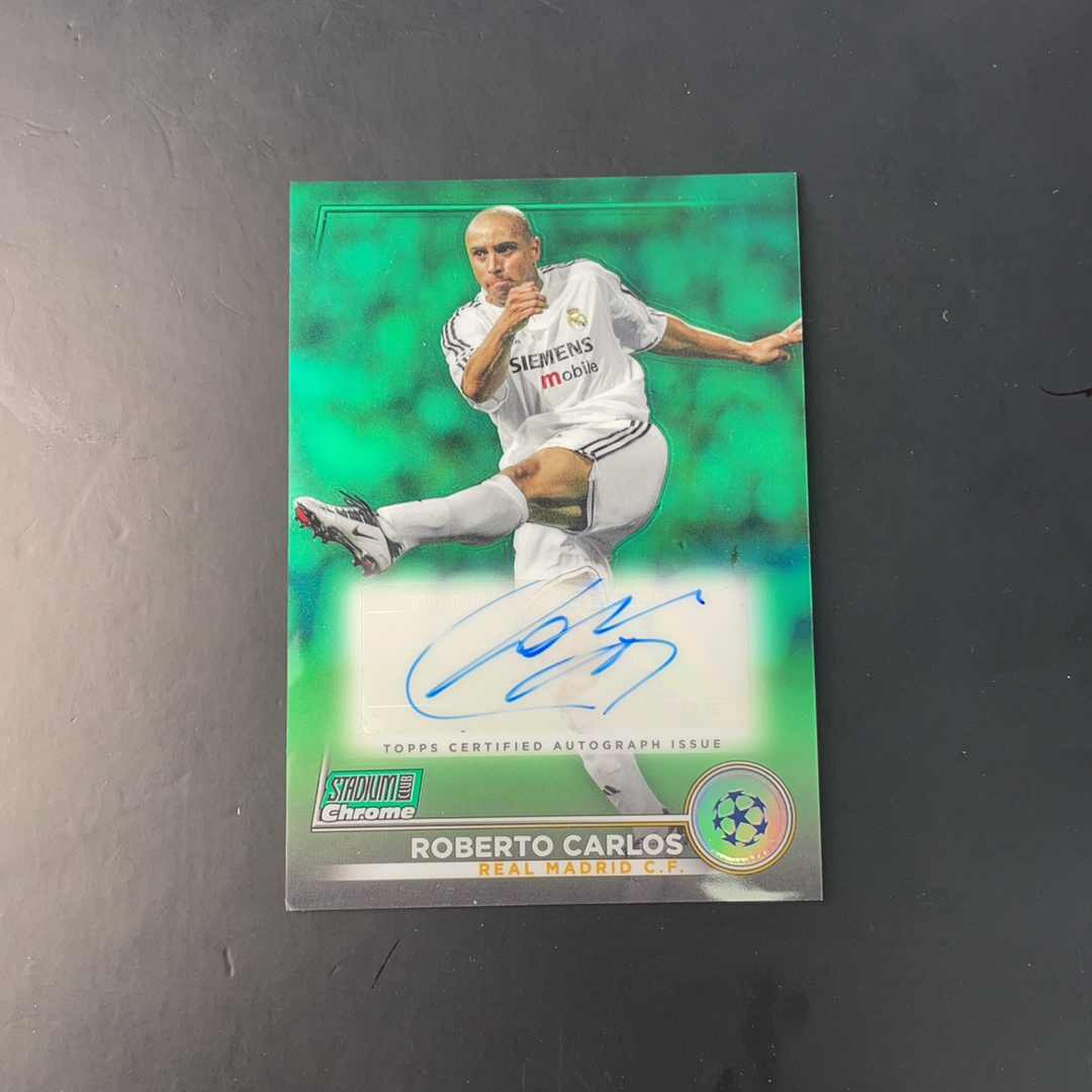 2022-23 Topps Stadium Club Chrome Roberto Carlos 欧冠 竞技场 皇马 罗伯托 卡洛斯 签字 30/99编 绿折 卡品如图 zacc