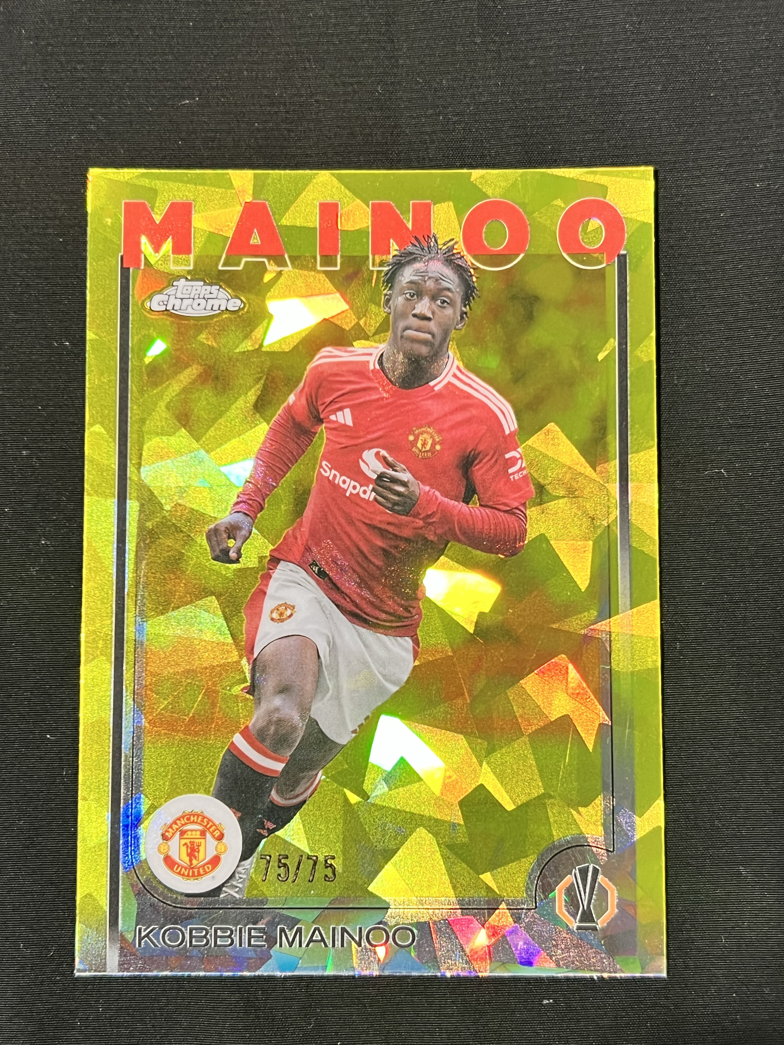 2025 Topps Chrome Kobbie Mainoo 欧冠TC 蓝宝石 曼联 科比 梅努 75编 黄碎冰折 收藏必备 豆豆