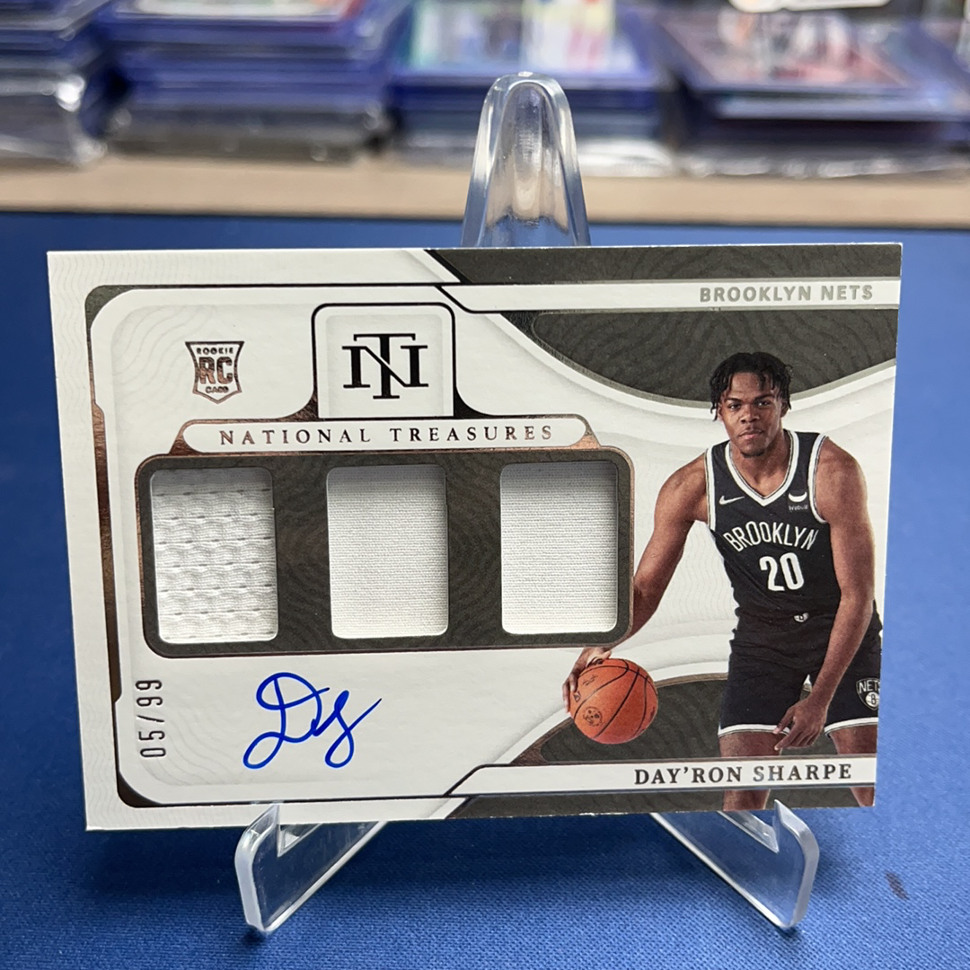 2021-22 Panini National Treasures Day'Ron Sharpe RC 国宝 新秀RC 篮网 戴龙 达龙夏普 99编 三窗 RJA 球衣 卡签 签字(起航代拍)sj
