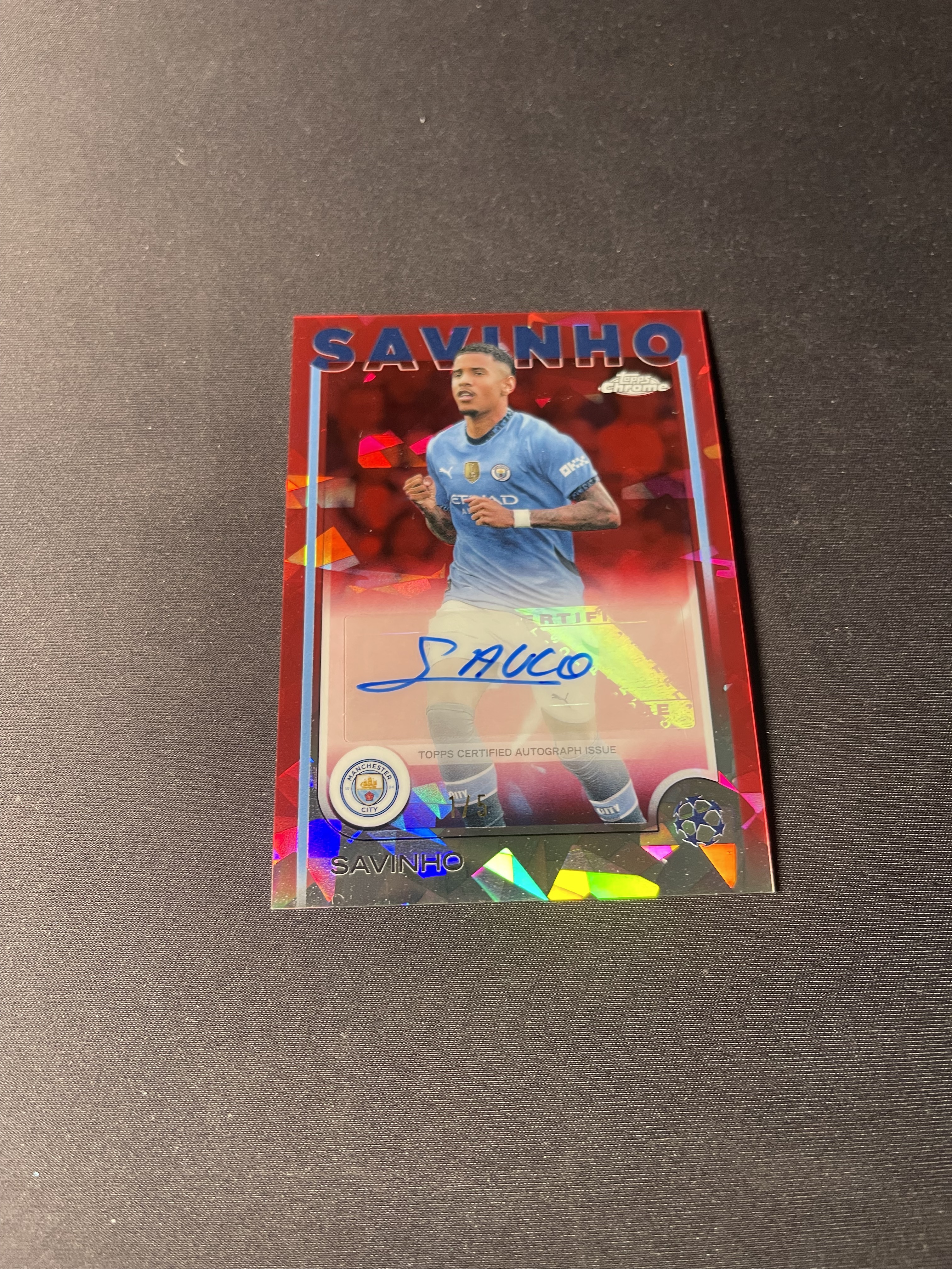 2025 Topps Chrome Savinho 蓝宝石 曼城 萨维尼奥 红碎冰 红折 签字 折射 1/5编 首编 不累计「老夫子」维维