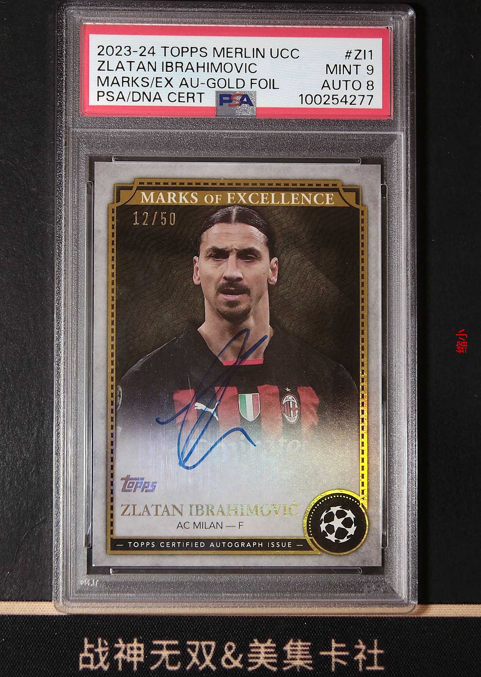 2023-24 Topps merlin Zlatan Ibrahimovic 欧冠 AC米兰 伊布拉辛莫维奇 伊布 超大比例 卓越 卡签 金折 50编 签字 PSA9分 8分 战神无双拍卡 (少年)