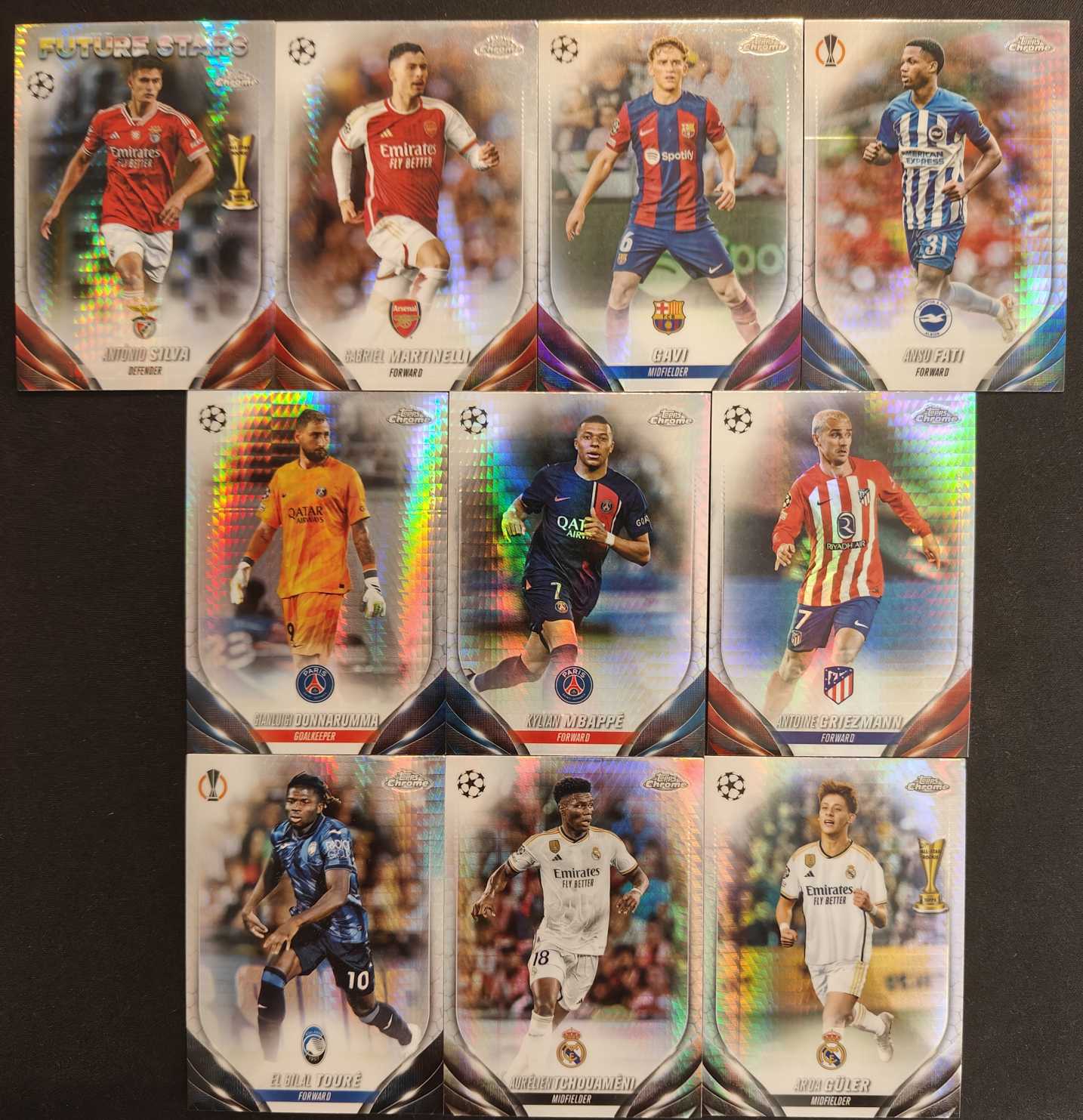 2023-24 Topps Chrome 欧冠 欧联TC 姆巴佩 格列兹曼 多纳鲁马 加维 法蒂 马丁内利 楚阿梅尼 居莱尔 A席等 10张 银棱镜折 折射 lot 不保卡品