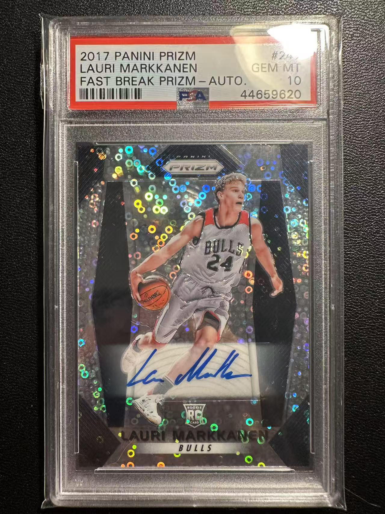 2017-18 Panini Prizm Lauri Markkanen RC 马尔卡宁 RC 新秀 银泡泡折 签字 签名 折射 爵士当家球星 psa10