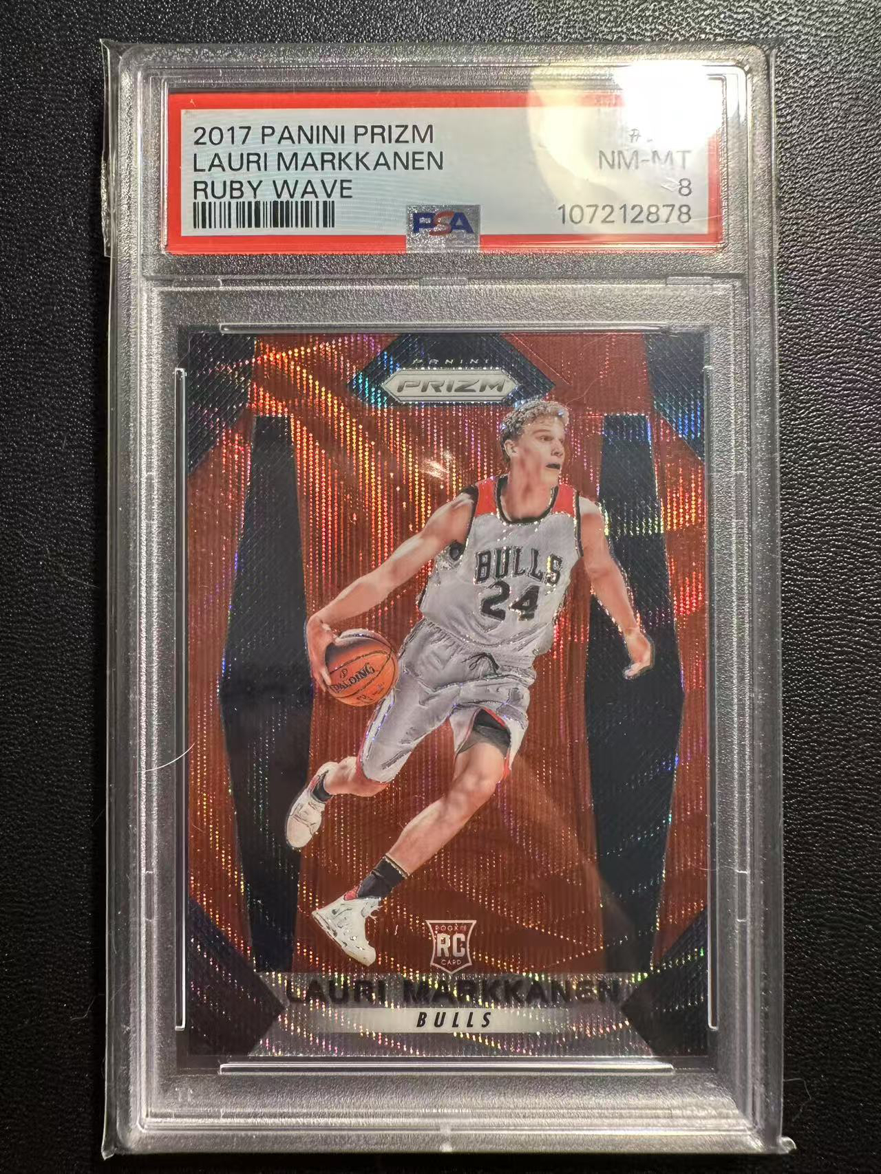 2017-18 Panini Prizm Lauri Markkanen RC 芝加哥公牛 马尔卡宁 RC 新秀 红波纹折 大热新秀 PSA8 专收必备