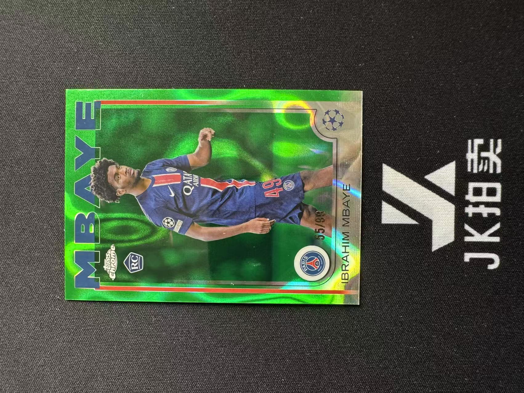 2024-25 Topps Chrome Ibrahim Mbaye RC 欧冠TC 巴黎圣日耳曼 易卜拉欣 姆巴耶 法国 新秀RC /99编 绿熔岩折 卡正反面微瑕 介意勿拍 -周哥-【JK拍卖】