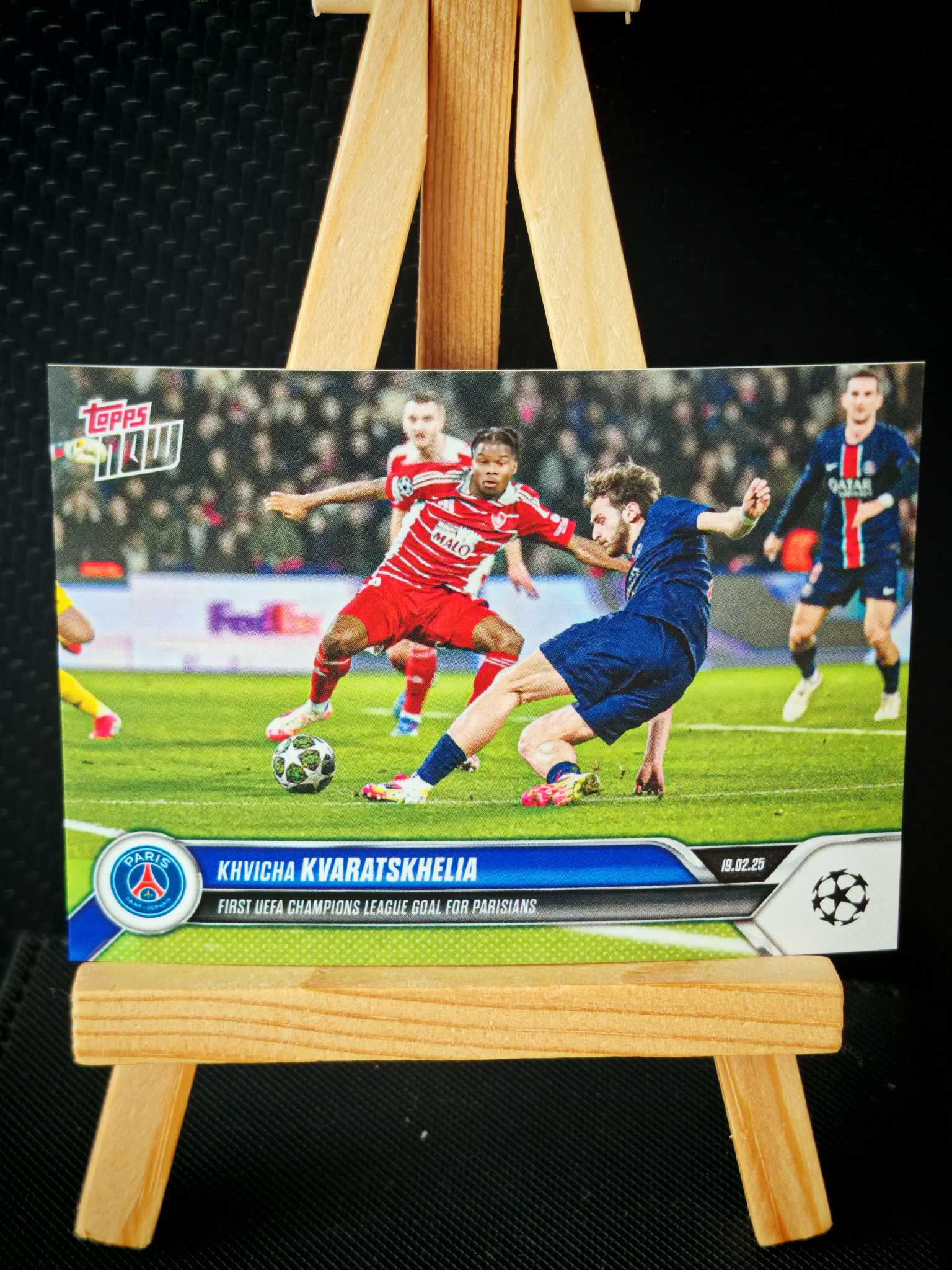 2025 Topps topps now 克瓦拉茨赫利亚 KHVICHA KVARATSKHELIA 克瓦拉茨基利亚在巴黎圣日耳曼7-0大胜布雷斯托瓦的比赛中打进了他在欧冠联赛的首粒进球 k77