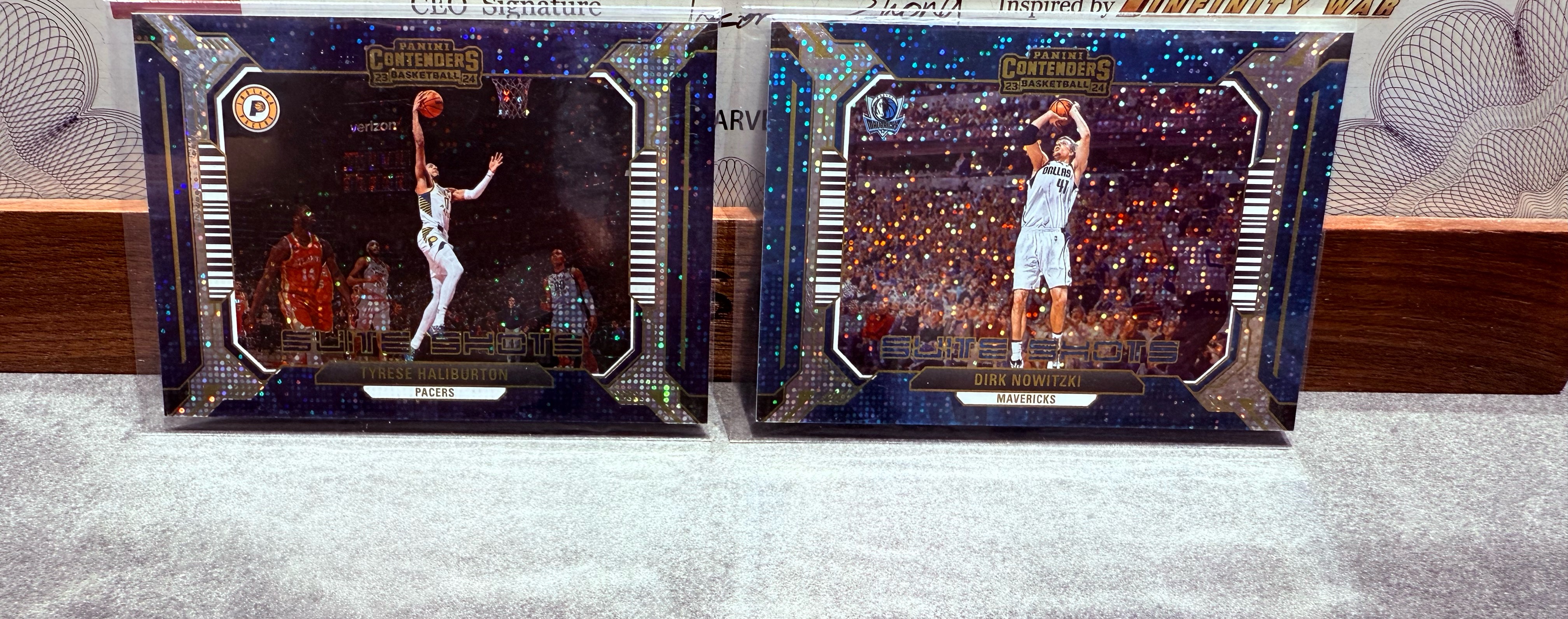 【扒卡拍卖】 2023-24 Panini Contenders Dirk Nowitzki 独行侠 德克 诺维茨基 司机 哈利伯顿 哈里伯顿 disco折 点点折 Suite Shots 场边 宽屏 特卡 2张打包 FT0712bk14