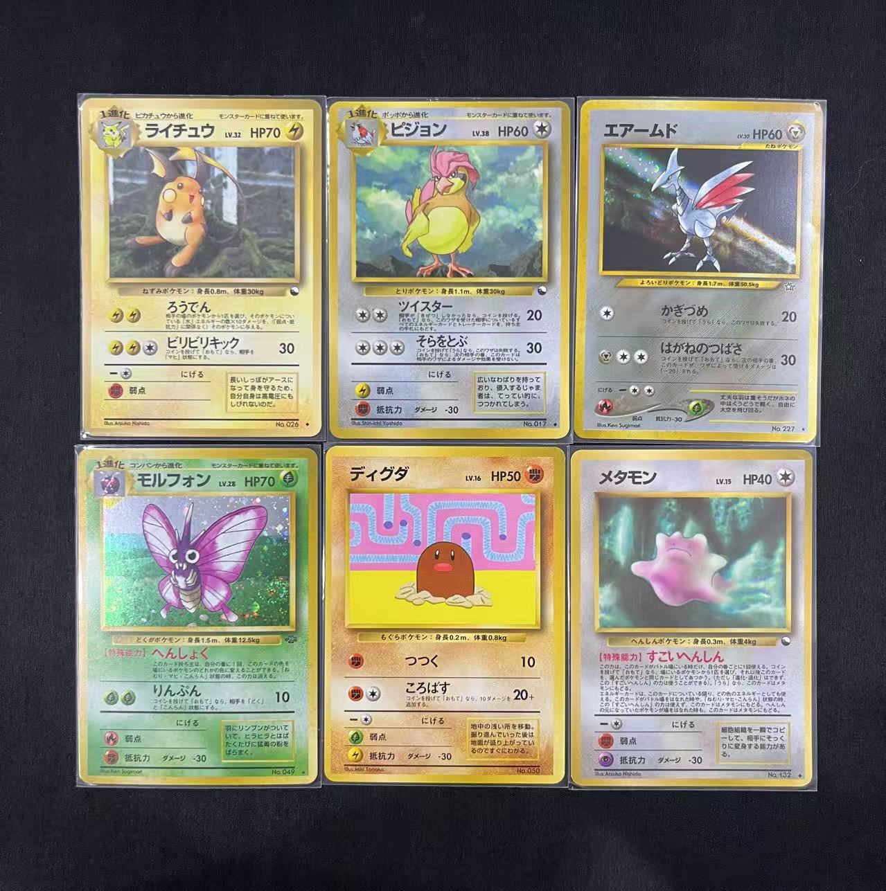 【长安代卖 截标预付80%】1996 Pokemon TCG 初代宝可梦 日版ja 雷丘 比雕 地鼠 百变怪 等 闪卡 稀有老卡 共6张【CA05】(L)(U)