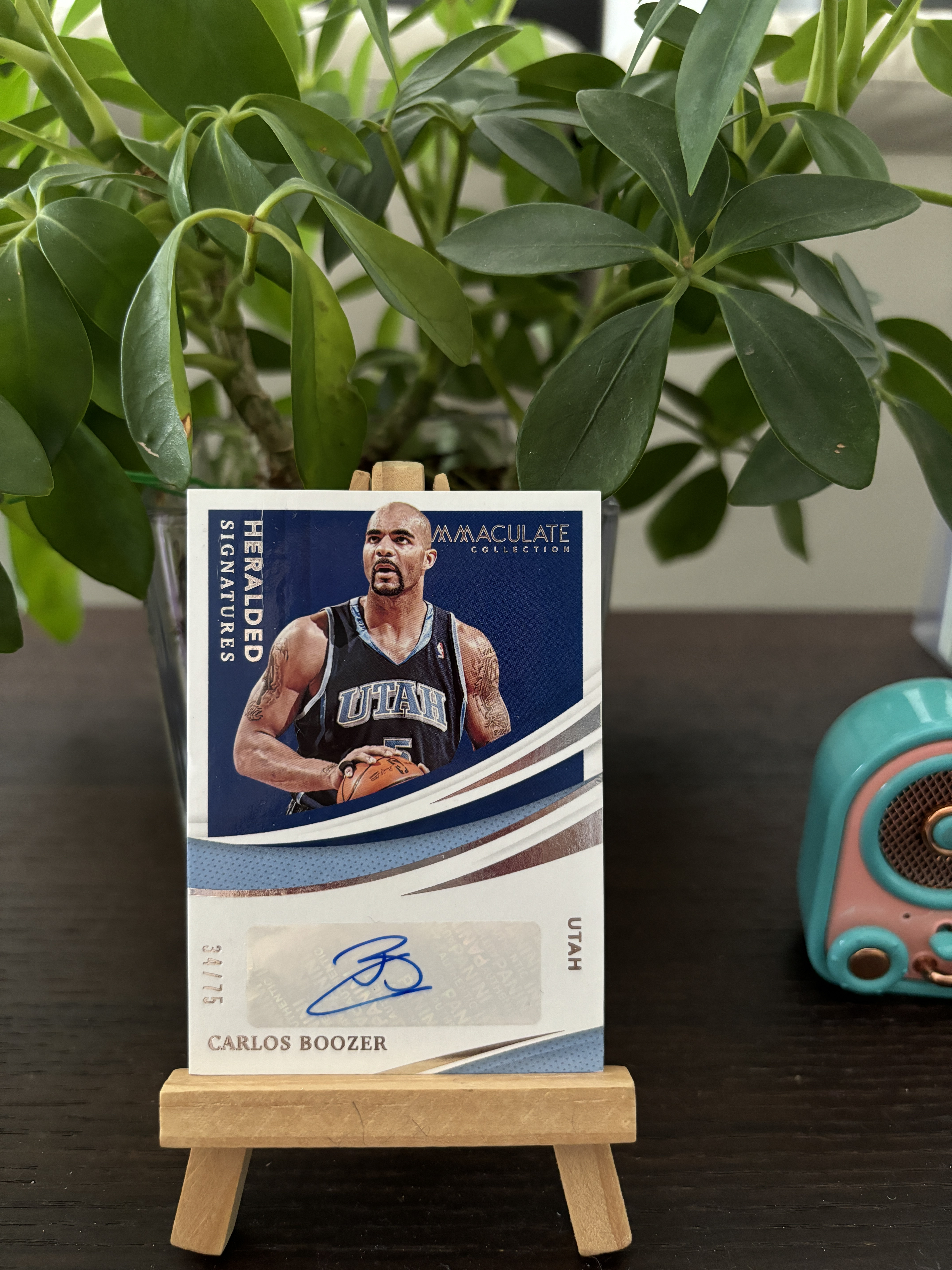 2020-21 Panini Immaculate Carlos Boozer 《快乐卡舍接寄拍》爵士 卡洛斯·布泽尔 34/75编 签字墨迹清晰 爱咪咪系列 瑕疵见图 投资收藏必备 张哥