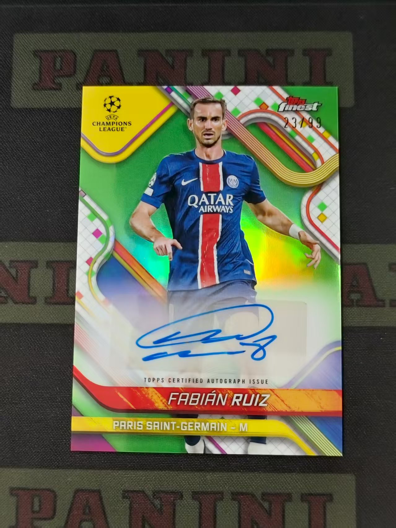 2025 Topps Finest Fabian Ruiz 法甲 巴黎圣日尔曼 大巴黎 法比安·鲁伊斯 绿折 99编 背号签 签字 瑕疵如图 大john