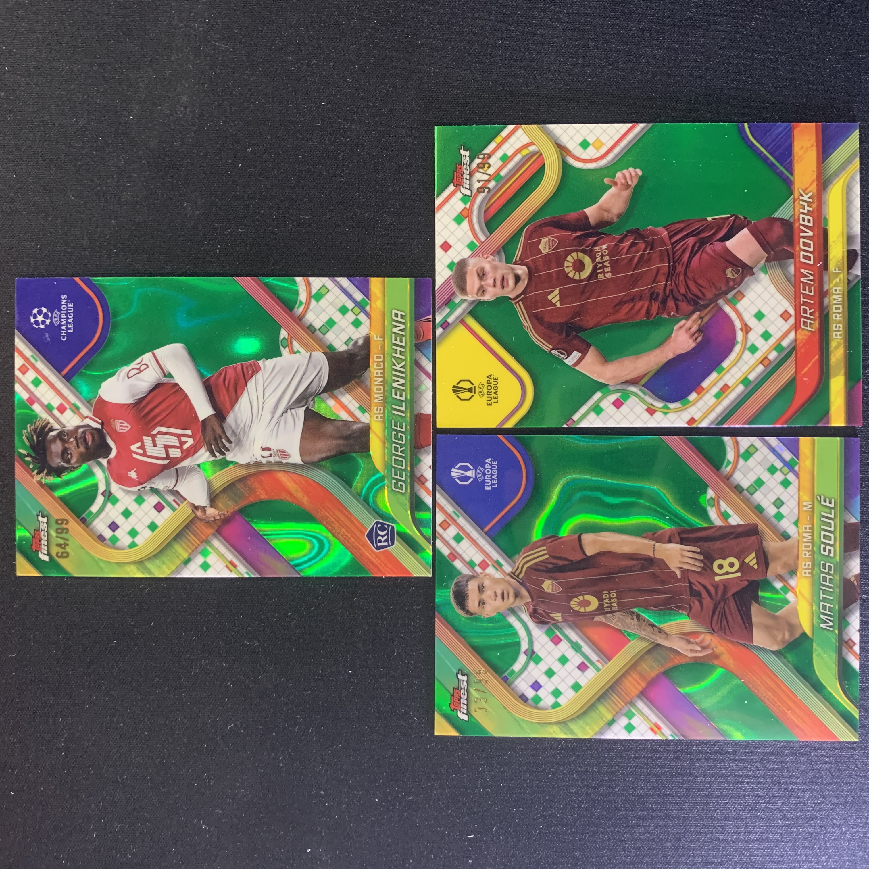 2025 Topps Finest George Ilenikhena 【piaji】欧冠 伊莱尼赫纳/马蒂亚斯·苏莱/绿熔岩折 阿尔特姆·多夫比克/绿折 99编 3张打包 aurora