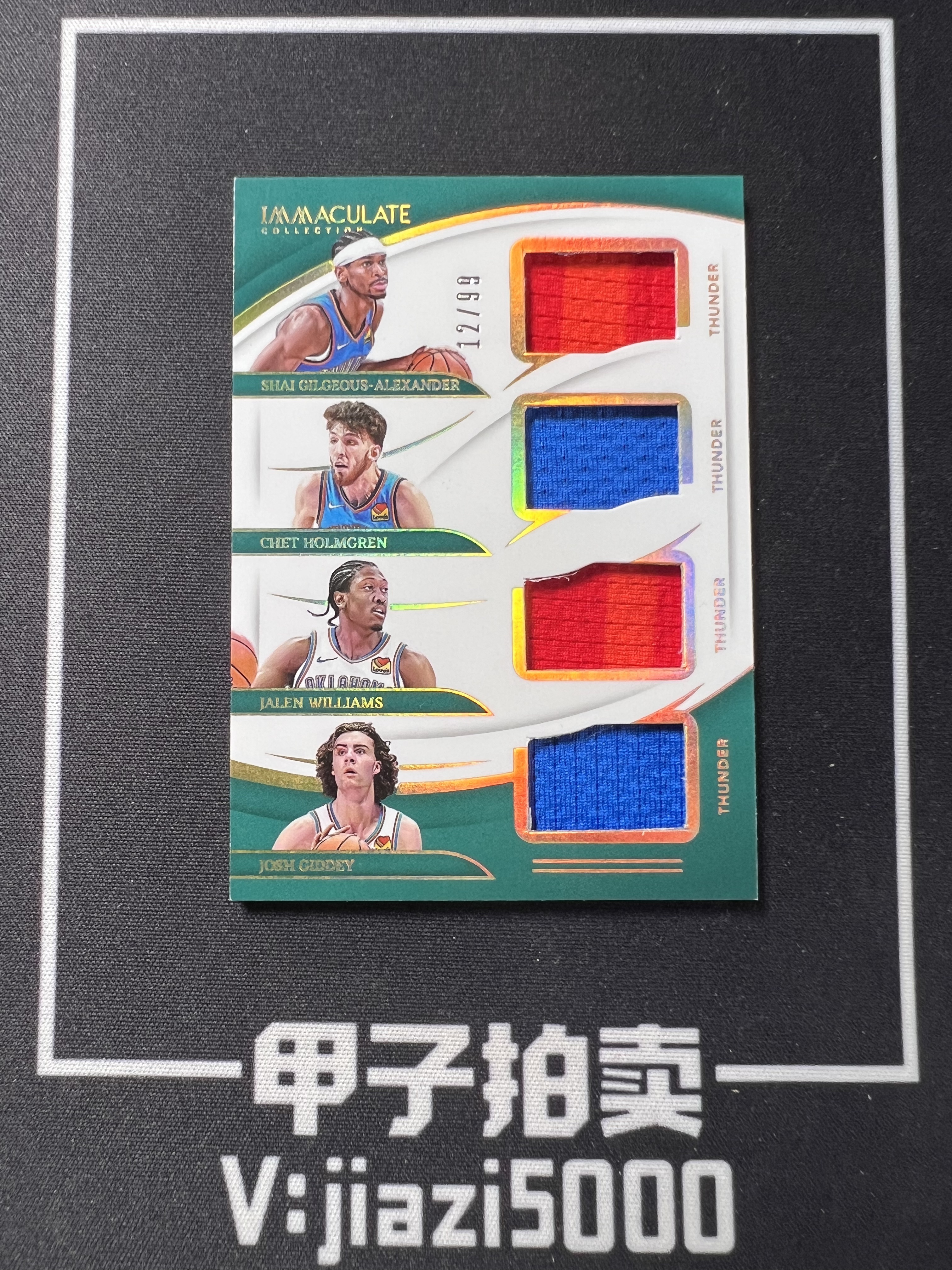 【甲子拍卖】2023-24 Panini Immaculate Gilgeous-Alexander 雷霆 亚历山大 切特霍姆格伦 杰伦威廉姆斯 吉迪 12/99编 四人 四窗 球衣物料patch 微瑕看详情图 立78C