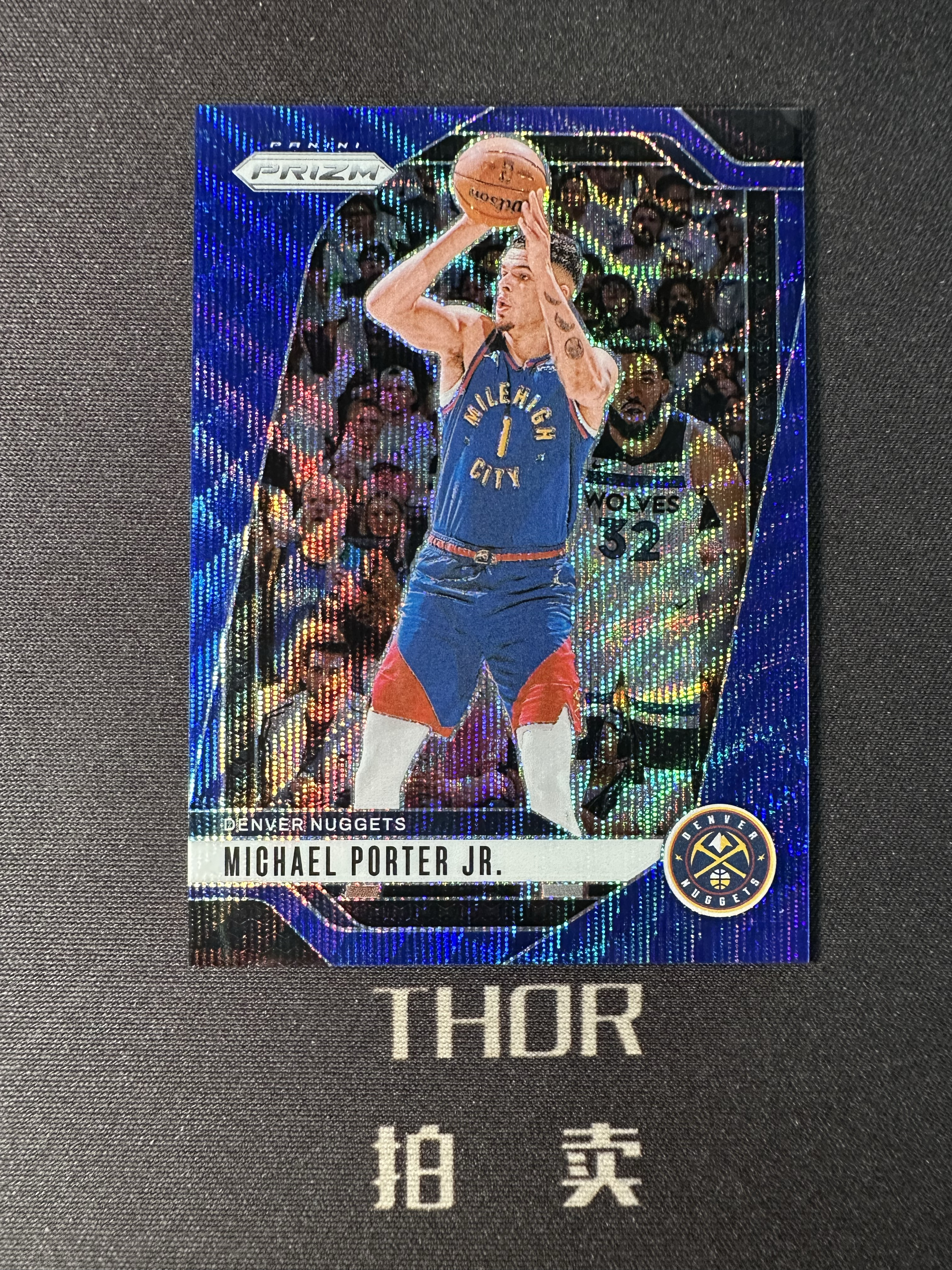 【Thor拍卖 只发顺丰不累计】2024-25 Panini Prizm Michael Porter Jr. PZ 掘金 迈克尔 小波特 蓝波纹折 125编【校长】21