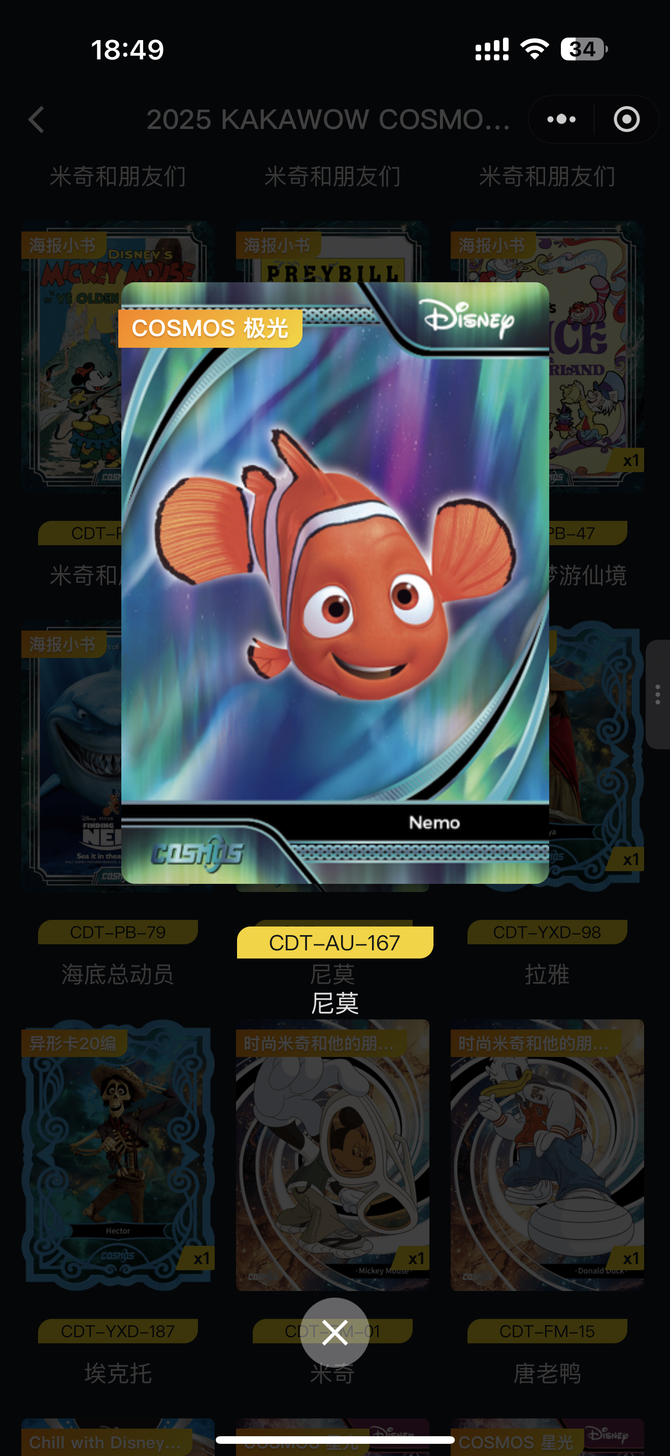 2025 卡卡沃 迪士尼 kakawow Disney cosmos 极光折45编 尼莫 新品 卡机直转 可博首尾编