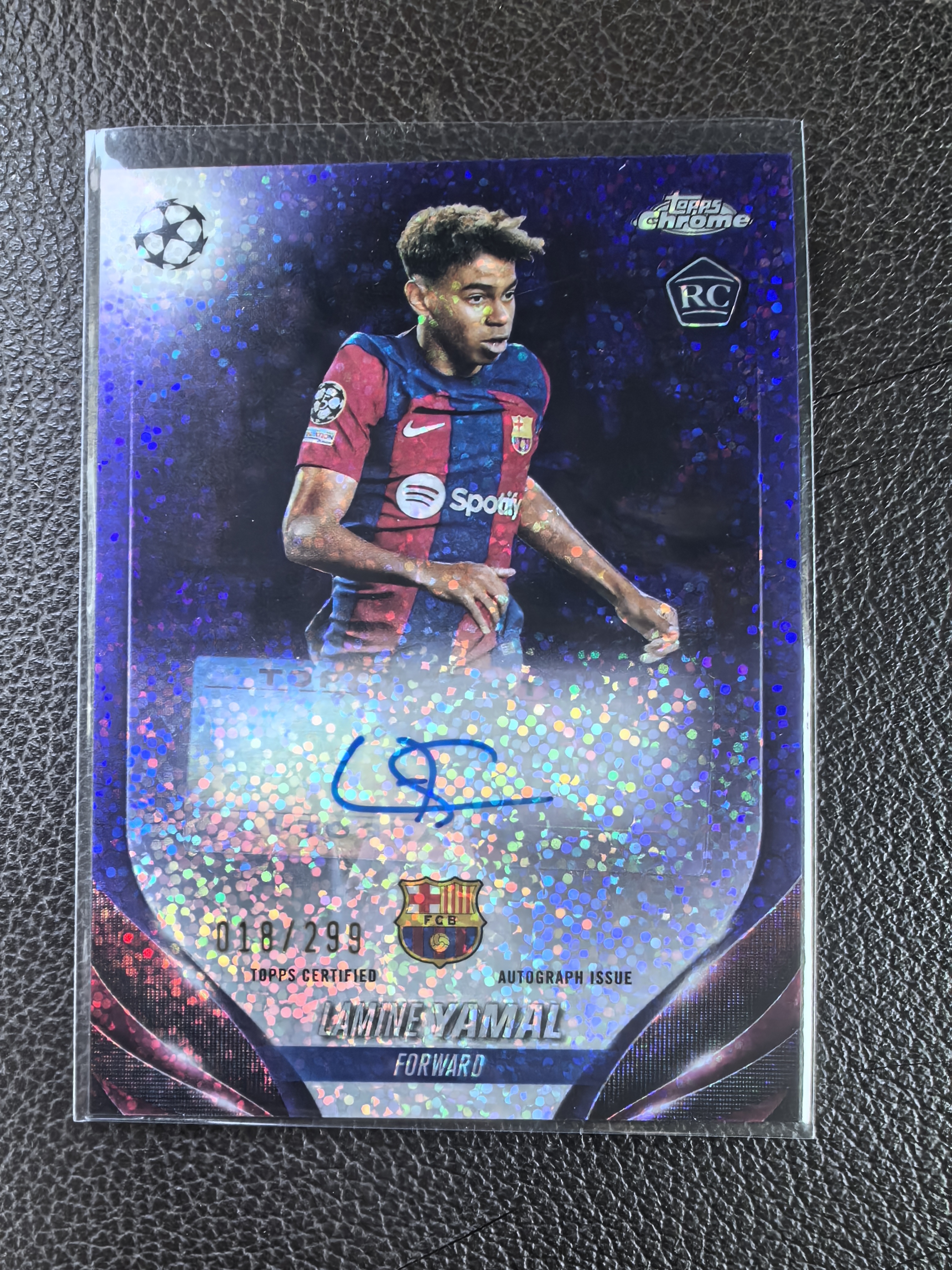 2023-24 Topps Chrome Lamine Yamal RC 欧冠 亚马尔 299编 新秀 签字 巴萨 color match 队伍颜色 未来球王 卡品签字完好 值得收藏