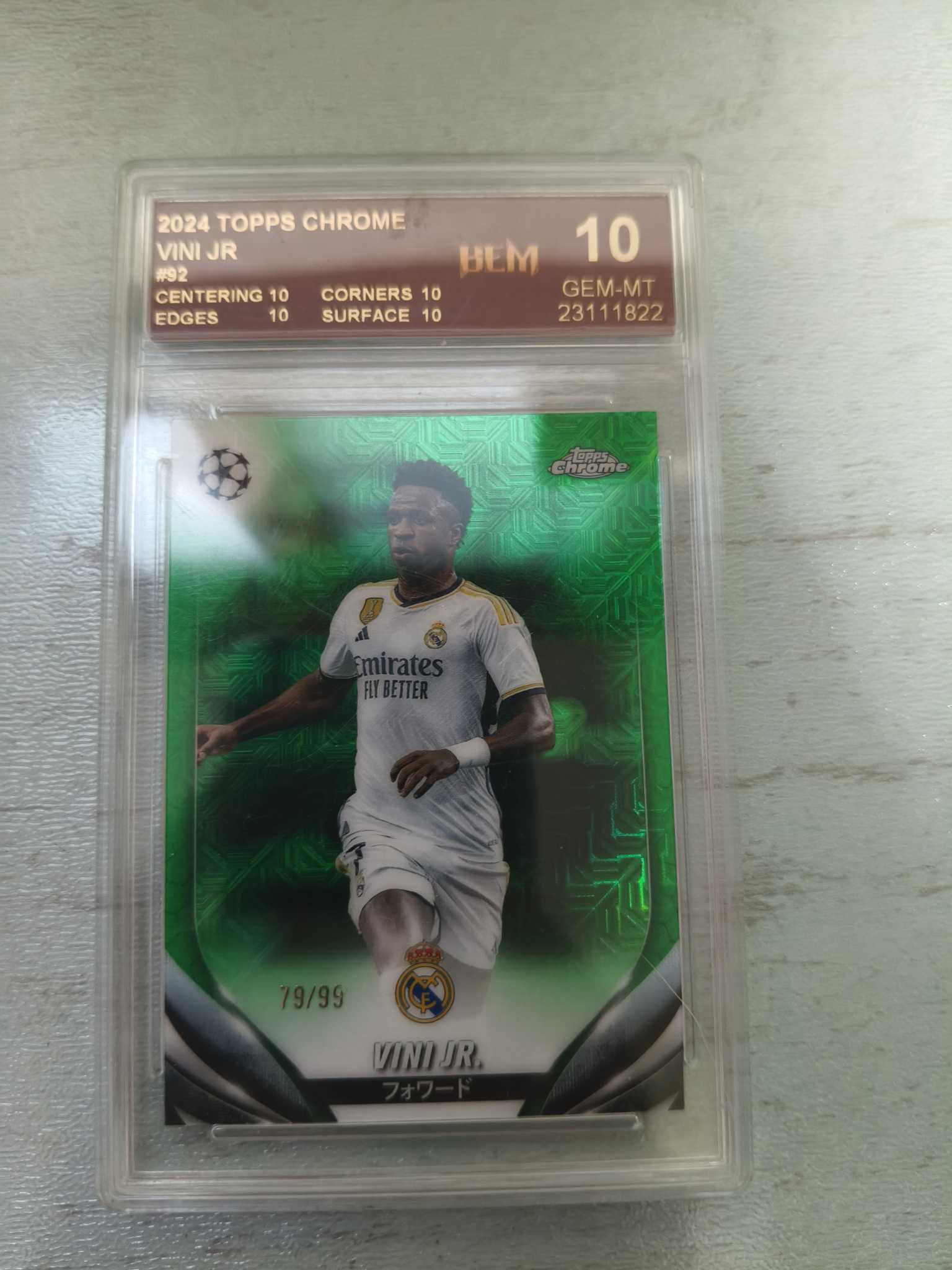 2024 Topps Chrome Vinicius Junior 欧冠日版樱花 皇马 维尼修斯 79/99编 评级10分