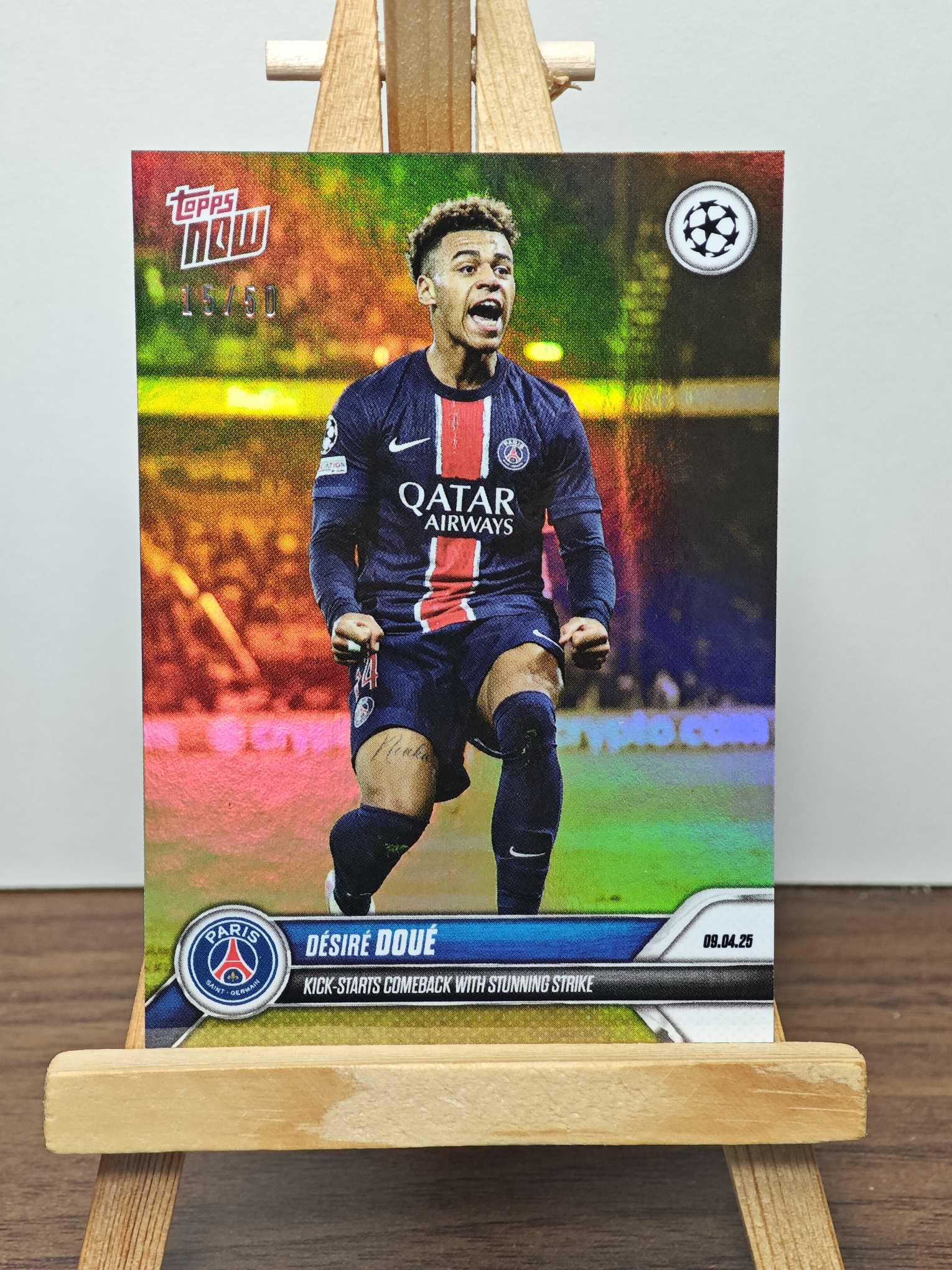 2025 Topps Now Désiré Doué 【人潮拍卖】杜埃 15/50编 金折 巴黎圣日尔曼 天才少年 打入精彩进球 庆祝选图 比肩亚马尔 价格已起飞