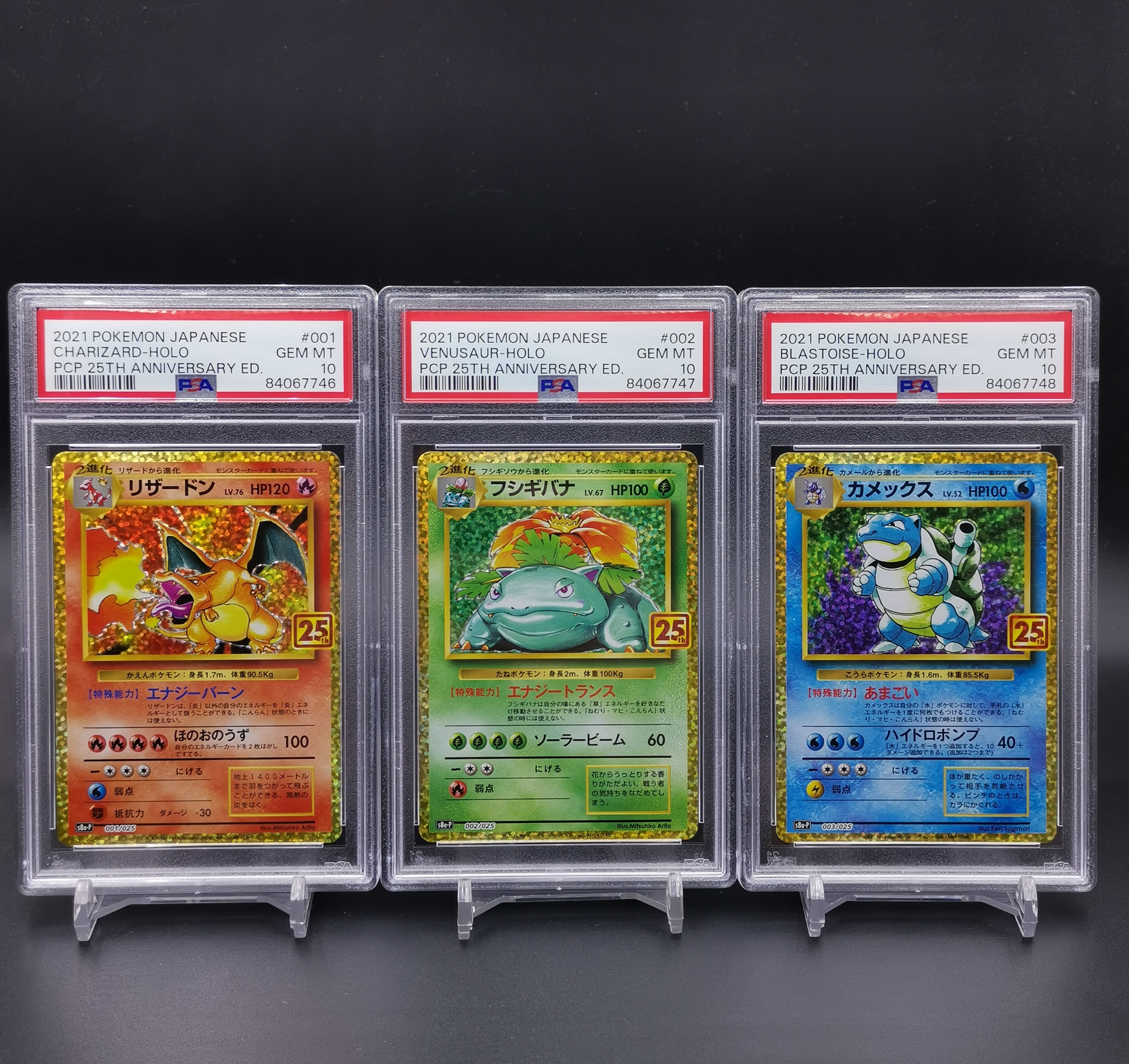 2021 Pokemon TCG ja 【学浪】PTCG 宝可梦 PSA10 完美卡品 喷火龙&妙蛙花&水箭龟 001-003/025 闪卡 S8a-P 25周年特典包 日版 三连号 专收必备 投资收藏必备 衣裳