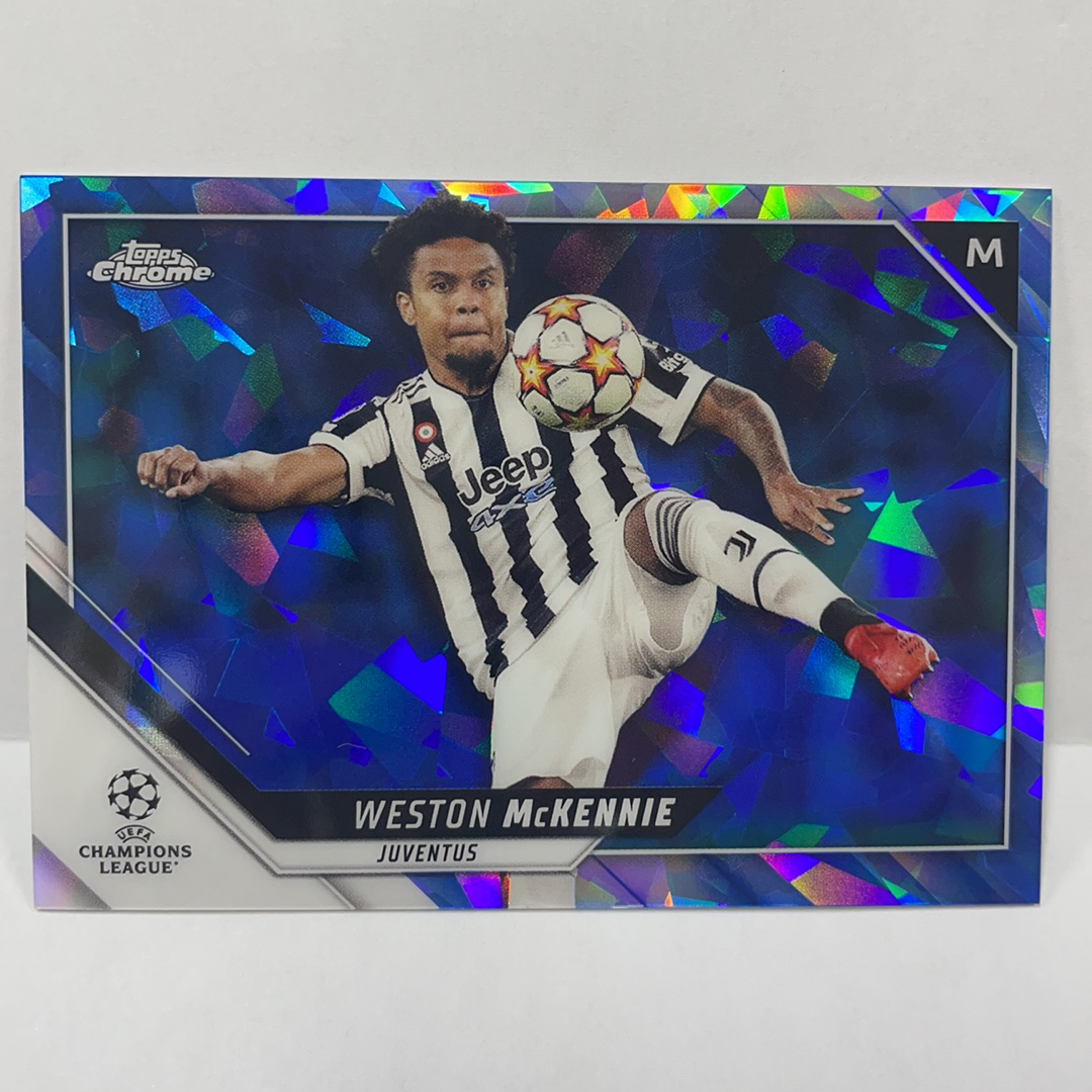 2021-22 Topps chrome Weston McKennie 欧冠蓝宝石 麦肯尼 蓝碎冰折 美国 尤文图斯 卡品如图 默认微瑕 凑套必备