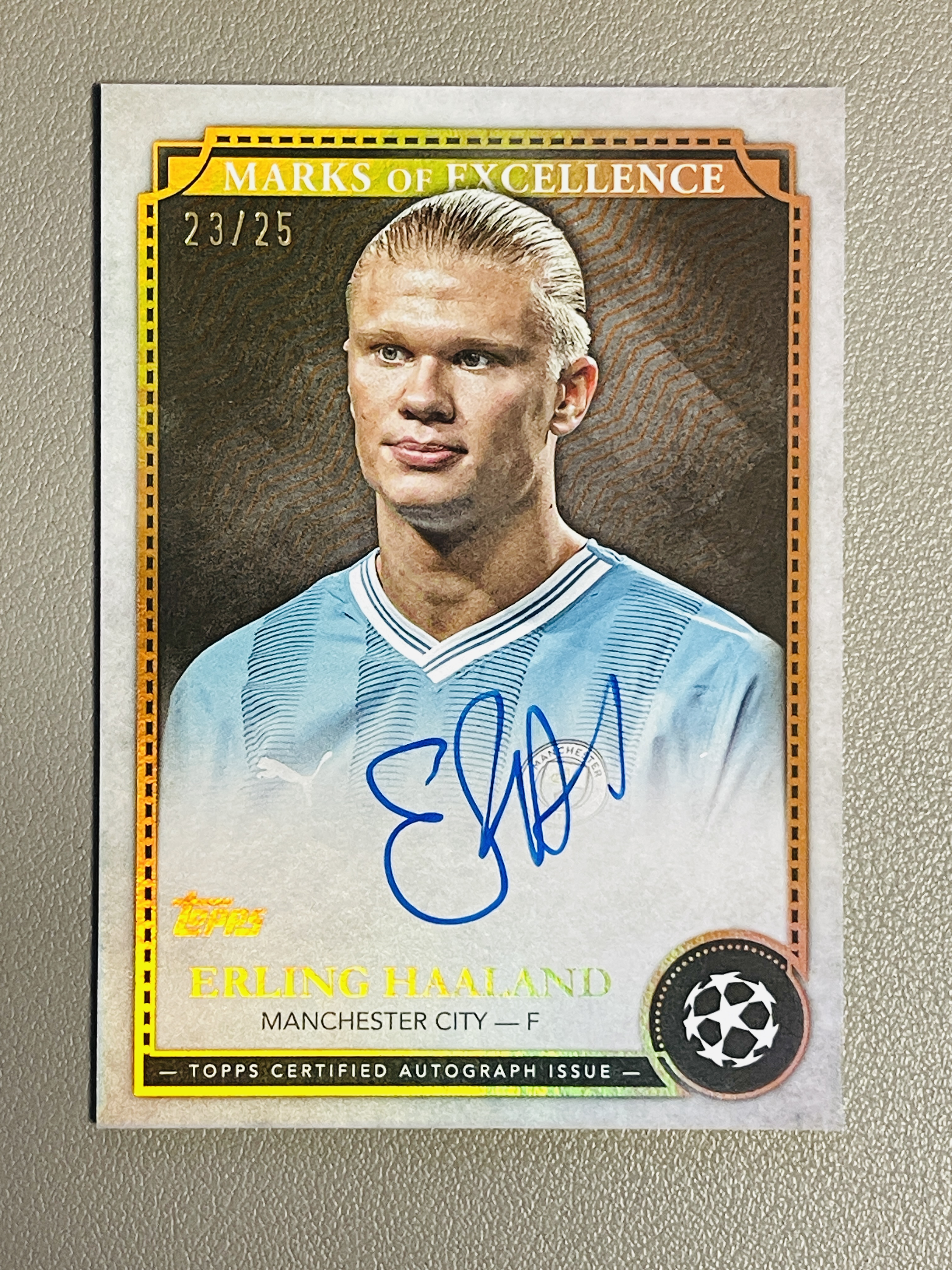 2024-25 Topps Finest欧战 Erling Haaland 【鲸鱼卡社】PDD 曼城 哈兰德 /25编 橙折 插放签字 卡签 marks of excellence卓越印记 详见描述