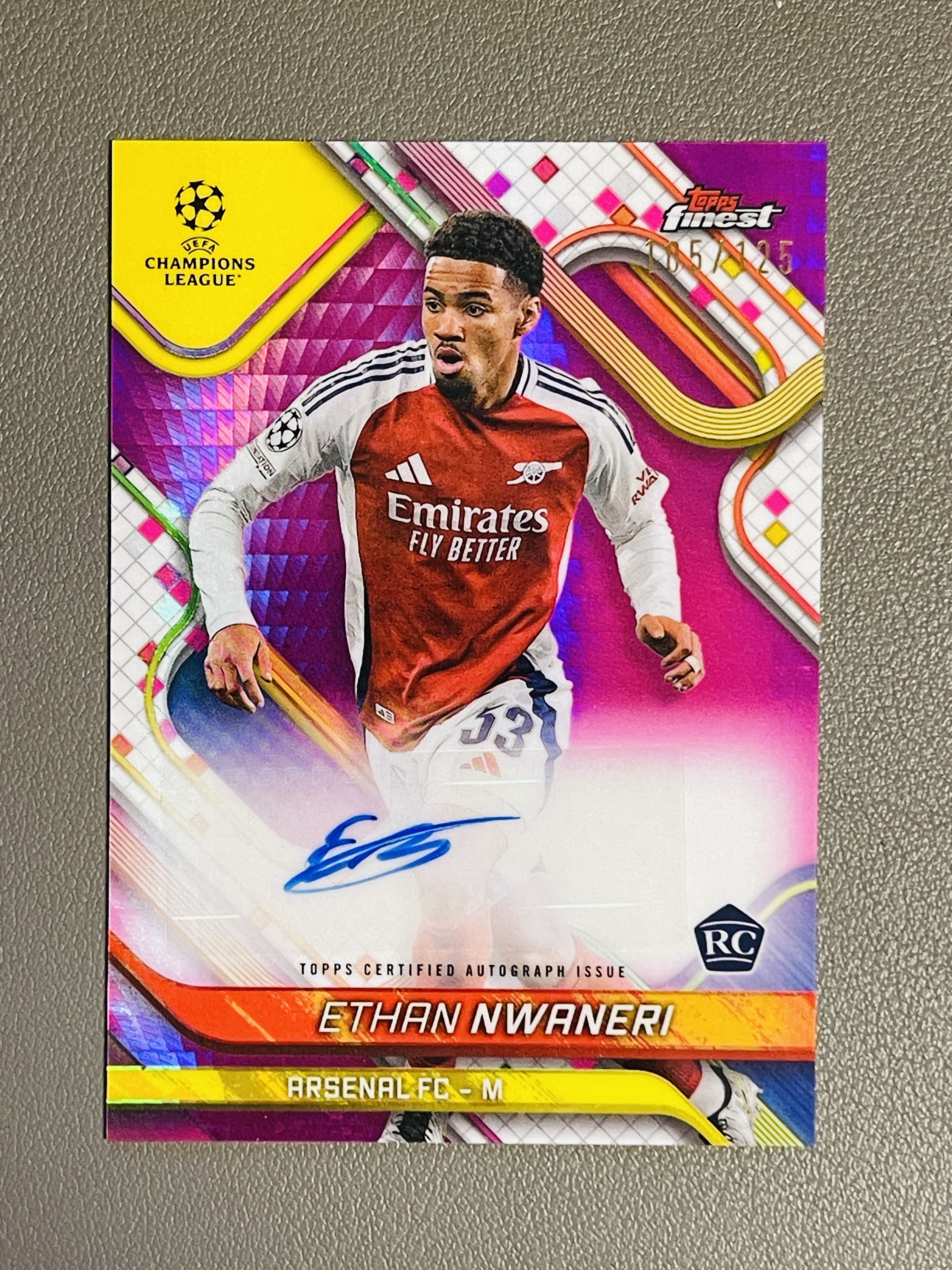2024-25 Topps Finest欧战 Ethan Nwaneri RC 【鲸鱼卡社】PDD 阿森纳 恩瓦内里 新秀RC /125编 粉折签字 详见描述