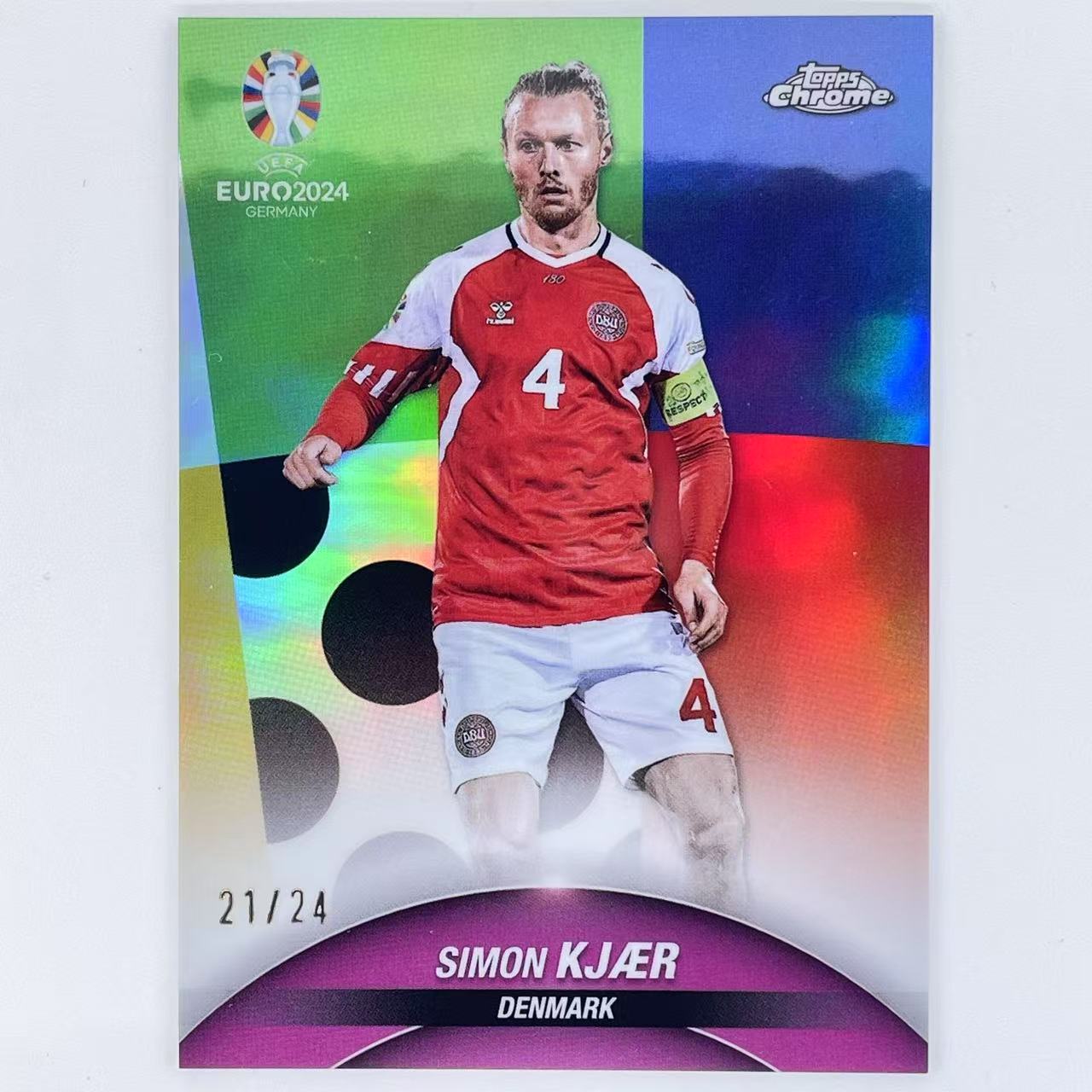 O 2024 Topps Euro Chrome Simon Kjaer 西蒙 克亚尔 丹麦 罗马 沃尔夫斯堡 AC米兰 欧洲杯 TC 21/24编 欧洲杯风格折 折射 大比例SP 轻印如图 碎碎念#
