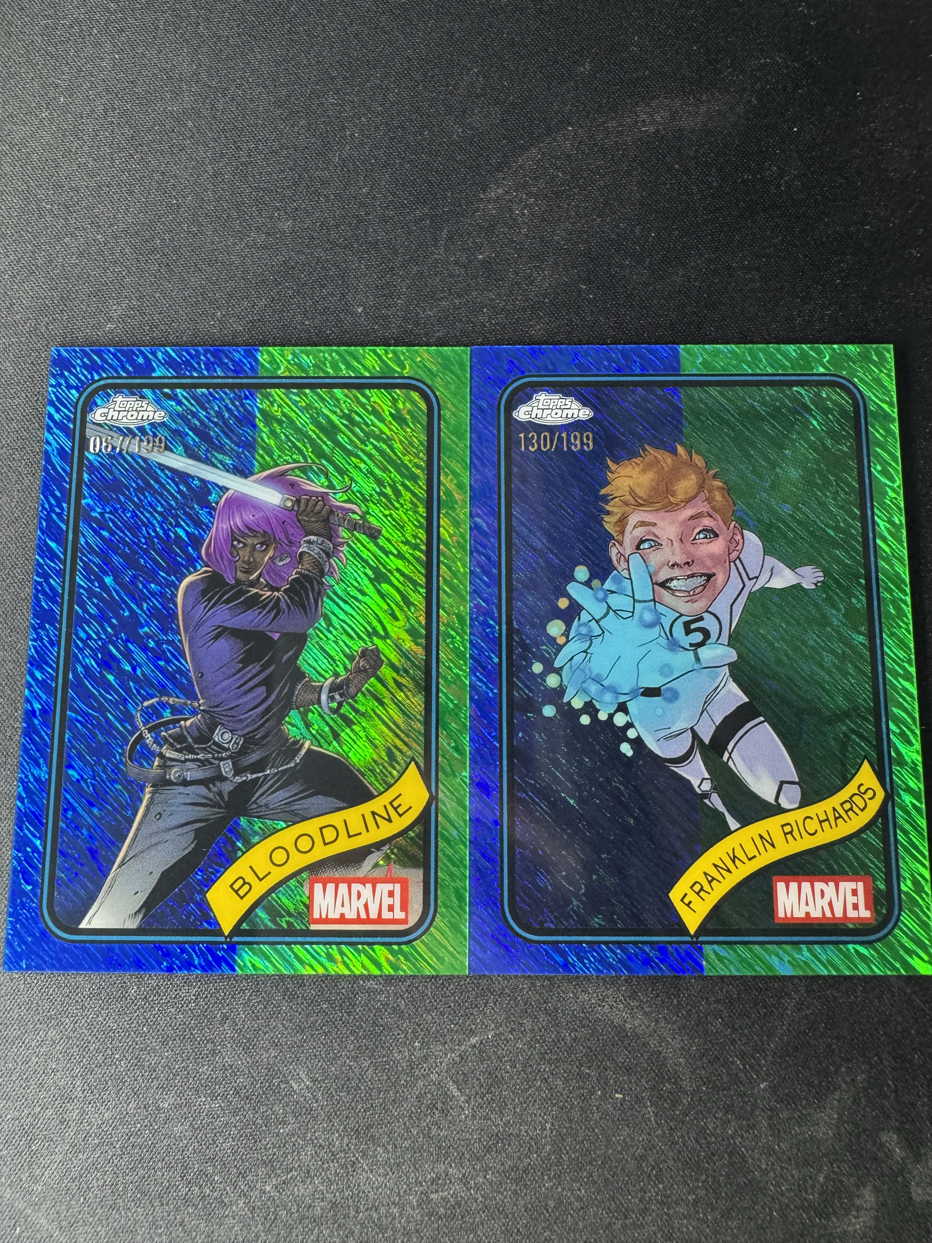 2025 Topps Marvel (MCU) chrome 【科科 尤因】漫威 TC Bloodline 血族 Franklin 富兰克林 理查兹 双色折 /199编 Ebay有价 卡品如图